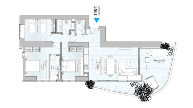 The thoughtful layout includes an open-plan living and dining area, a modern kitchen, three generously sized bedrooms including a master suite with a private bathroom, and expansive outdoor space ideal for relaxing or entertaining.