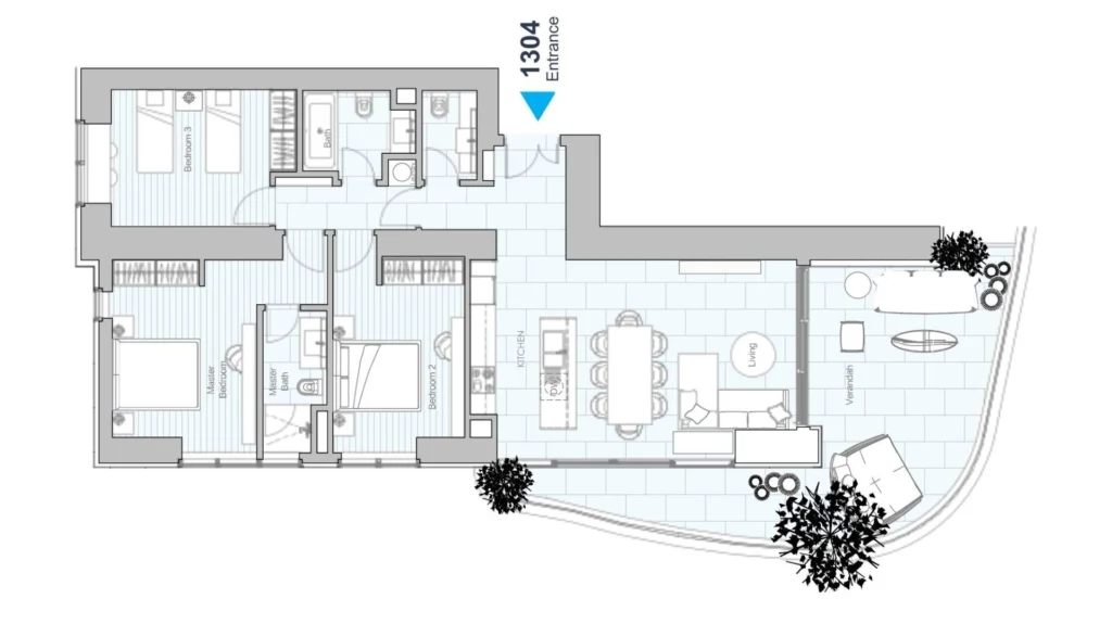 The thoughtful layout includes an open-plan living and dining area, a modern kitchen, three generously sized bedrooms including a master suite with a private bathroom, and expansive outdoor space ideal for relaxing or entertaining.