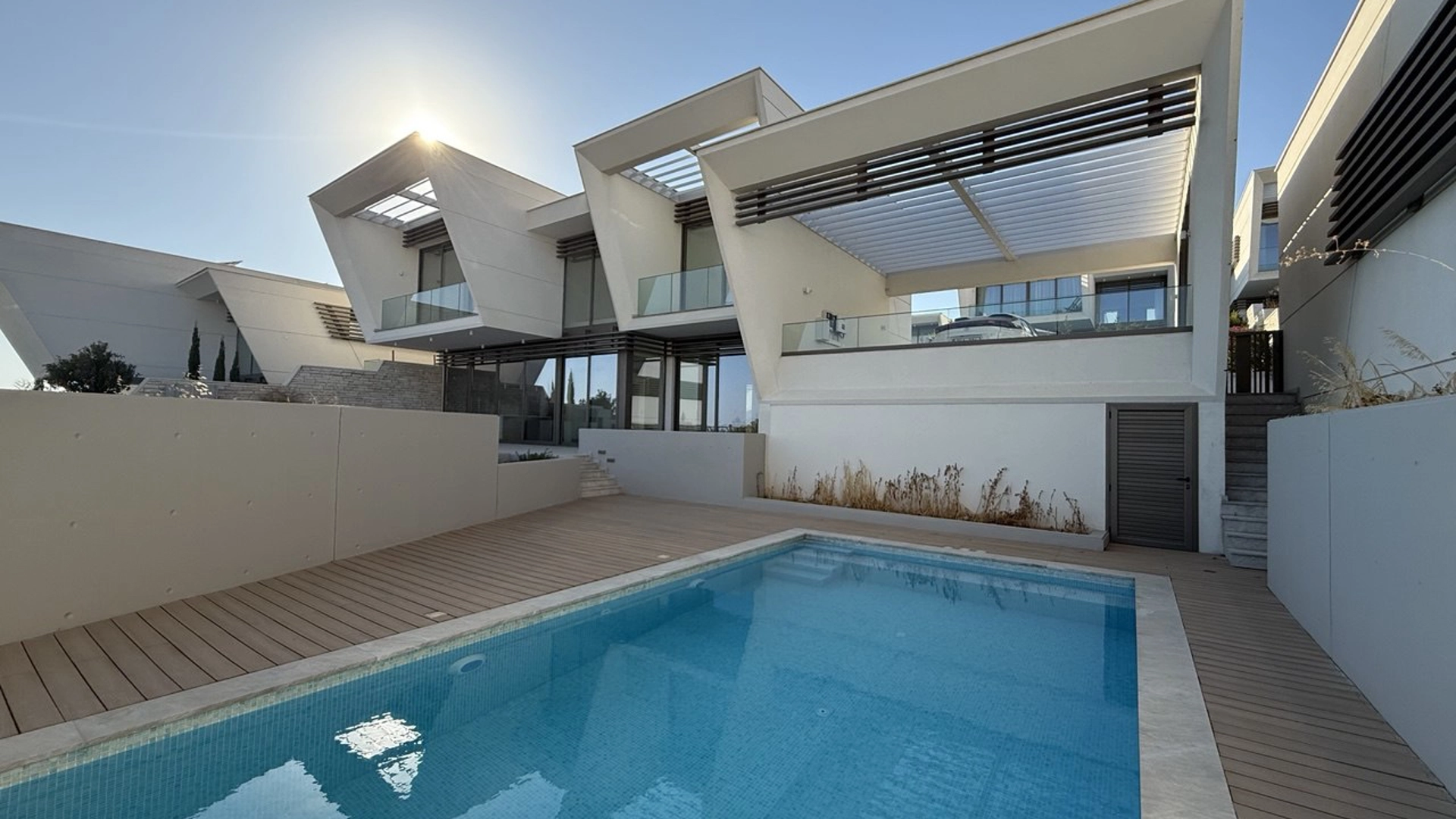 Luxury villa for sale in a beautiful area of Limassol. High-quality finishing (parquet, high doors 2.4 m security entrance doors, thermo-aluminum window frames with double glazing, built-in furniture of the highest standard, plumbing). Marble floors and walls in toilets and bathrooms; High ceilings (3.15 m); Secure entrance doors; intercom system; Underfloor heating and central VRV air conditioning; High-quality plumbing from European brands.