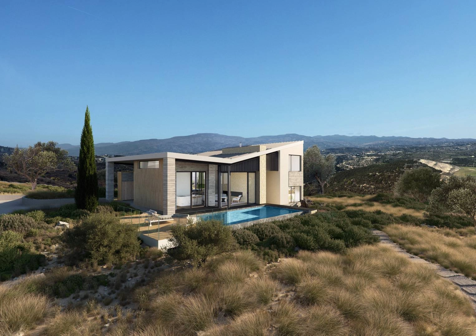 Luxury villa for sale in a new residential complex of Paphos, Tsada district. The elite complex occupies 5,000,000 m2, the Natura-2000 natural complex (ecozone of the EU) is located around the project. The complex is also ready to offer residents and guests a championship-level golf course with 18 holes, as well as chic spaces with thickets of figs, walnuts and olive groves, and, of course, a historical monastery of the 12th century. The options for purchasing real estate in the complex are very diverse, and the building density is low, which guarantees the stability of the demand for buying and renting for a long time. The complex was created in order not only to become a safe investment, but also to ensure the growth of its market price due to novelty.