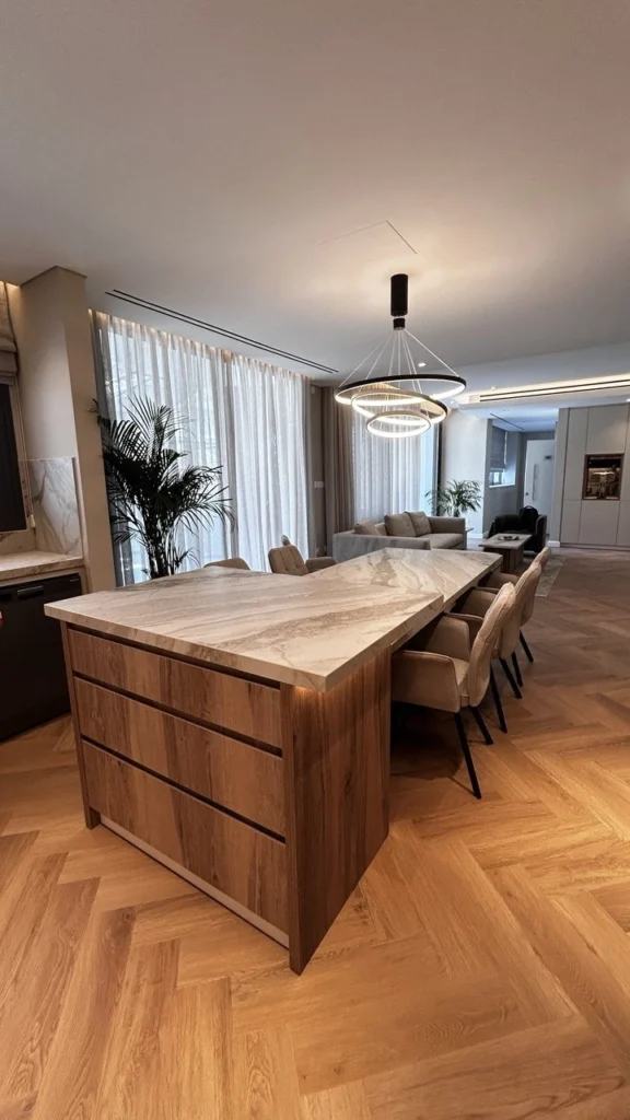 The kitchen is modern and practical, designed with sleek cabinetry, premium finishes, and ample counter space. Its layout ensures convenience for everyday meals as well as for hosting gatherings.