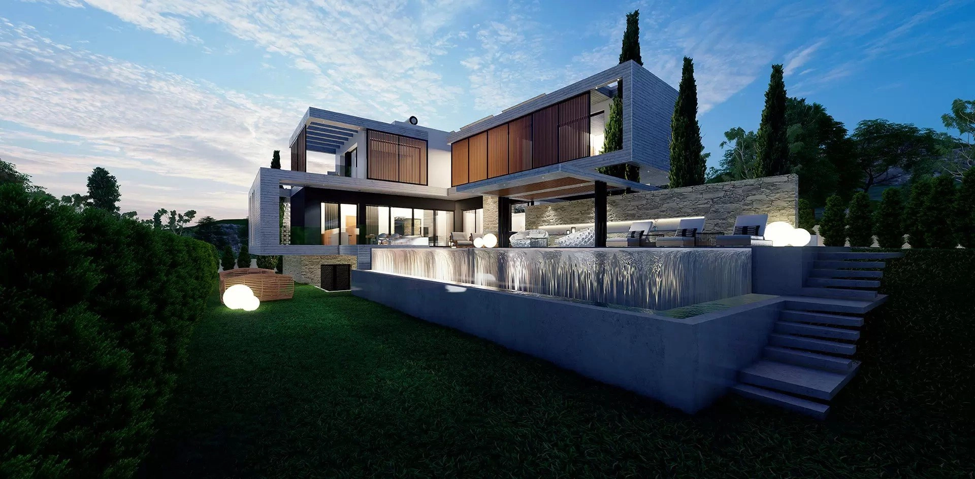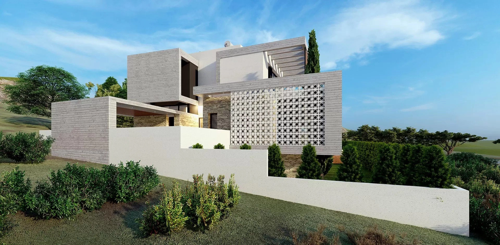 An elite spacious villa with a unique architectural design in a modern style, with 6 bedrooms and an Infinity overflow pool. The luxurious residence is located in the prestigious suburbs of Limassol, in the picturesque area of Kalogiry. The villa harmoniously integrates into the natural landscape, which allows you to fully enjoy the breathtaking views and mountain landscapes.