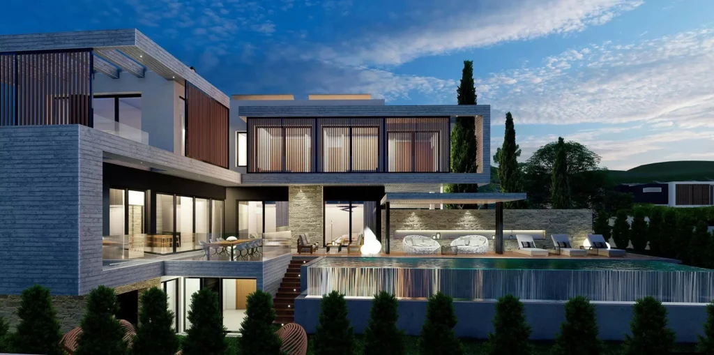 An elite spacious villa with a unique architectural design in a modern style, with 6 bedrooms and an Infinity overflow pool. The luxurious residence is located in the prestigious suburbs of Limassol, in the picturesque area of Kalogiry. The villa harmoniously integrates into the natural landscape, which allows you to fully enjoy the breathtaking views and mountain landscapes.