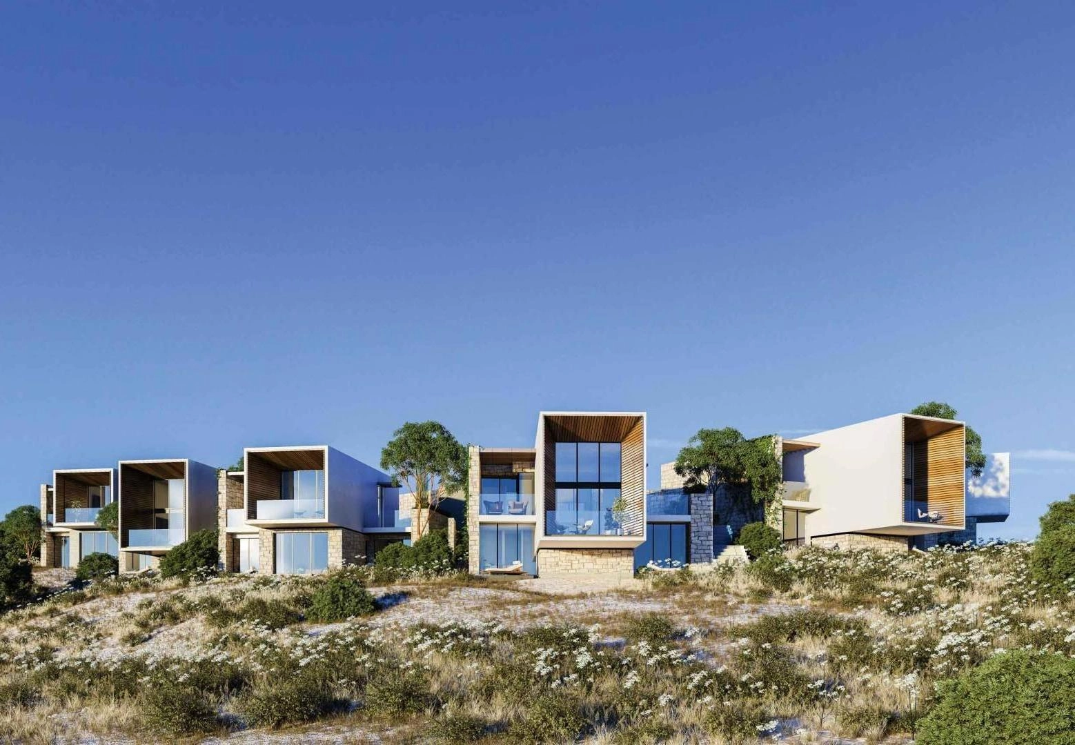 For sale luxury 3 bedroom Villa in a new residential complex of Paphos, Tsada area. This is magnificent residential area, consisting of two – and three-bedroom villas located on a hilltop, with breathtaking views of the sea and the mountain range of Troodos. Combines modern design with traditional architecture, with its characteristic inner courtyards, private gardens and swimming pools.