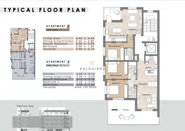 The property consist of an open plan kitchen living and dining area ,two bedrooms ,the master bedroom has en suit shower, one main bathroom with wc It has internal area of 80sqm (approx.).The apartment has also a covered parking on the ground floor .