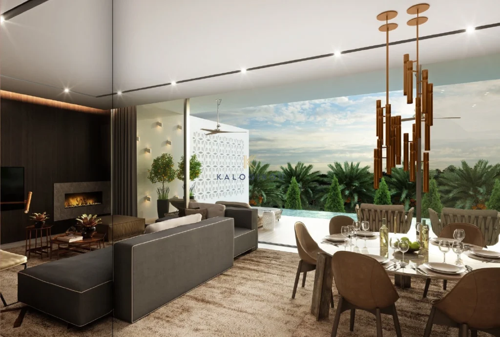 The project is an innovatively stylish development of 18 standers, duplex and triplex apartments, made up of 14 three-bedroom apartments and 4 two-bedroom apartments. Apartments are spacious, bedrooms have en suite bathrooms, there is plenty of cupboard space, high ceilings, private pools, large terraces, plenty of green on the terraces and around the building. The modern interiors are complemented with the warmth of wood-panelled walls, rich floor finishes, floating white ceilings, designer kitchens and elegant light fittings that illuminate the living spaces.