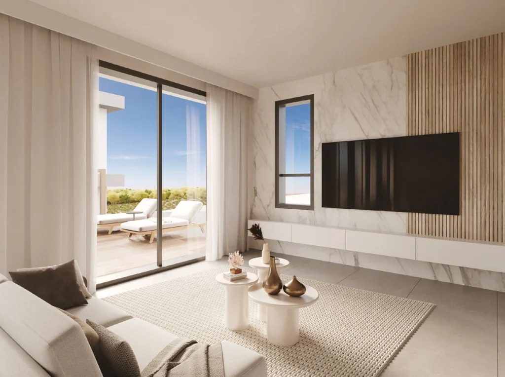 Three-bedroom villa for sale in Episkopi, Pafos. The interior spaces, which are perfectly planned to the highest standards, will ensure your comfortable stay. The villa consists of a cozy living room, a modern kitchen and comfortable bedrooms. The VRV system will control the temperature regime, and underfloor heating is also provided. You can also relax on the large verandas and balconies. In the courtyard there is a garden and a large swimming pool 3 by 6 meters. The complex of 9 luxury villas is located in a picturesque landscape among the hills, famous for the almond and olive trees growing here. It is ideal for people who appreciate style, comfort and beauty, and also want to settle in a calm and quiet place. Access to the main intercity highway, beaches, the city of Paphos and the airport is very easy, the car journey to the main amenities will take no more than half an hour.