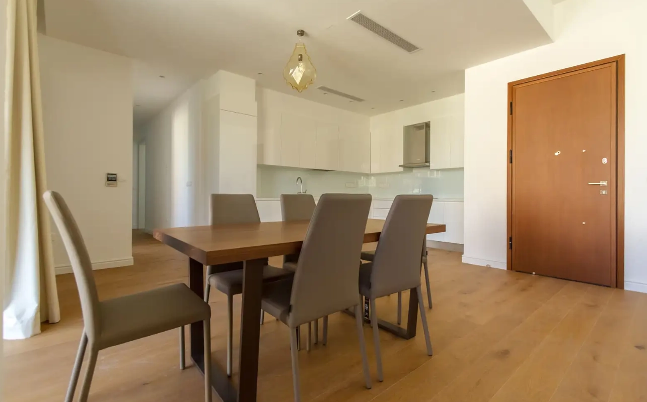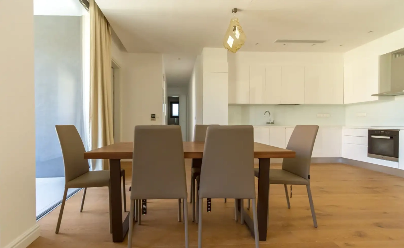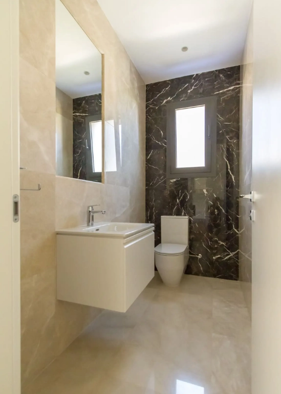 Three-bedroom apartments are located in the most desired area of Limassol, Potamos Germasogia. It’s quiet and perfect for permanent living. You’ll find sandy beaches and city facilities nearby, including supermarkets, schools, kindergartens, spas, etc.