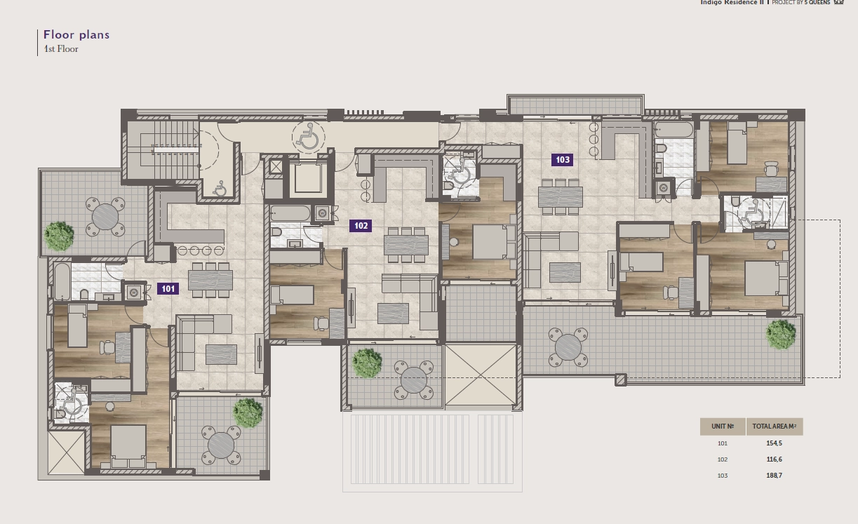 Residents enjoy access to a landscaped communal area with a swimming pool, covered parking, and a private storage room on the ground floor. The gated complex is equipped with 24/7 CCTV for complete peace of mind. Energy-efficient features, such as underfloor water heating and a VRV air conditioning system, ensure year-round comfort.