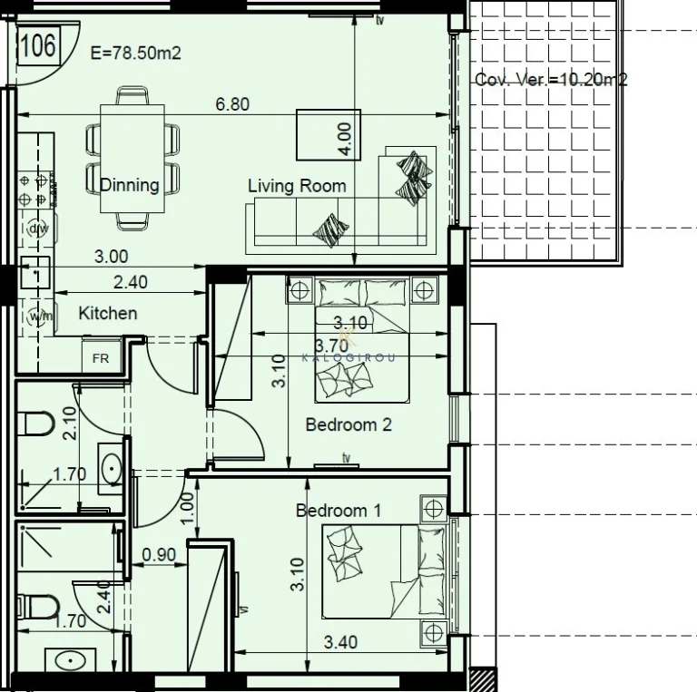 Apartment on the second floor, for sale in Deryneia area, Famagusta. It consists of an open plan kitchen, living and dining area, 2 bedrooms, master en suite bedroom and covered veranda. The property has also access a private covered parking & storage on the ground floor and a communal rooftop swimming pool.
