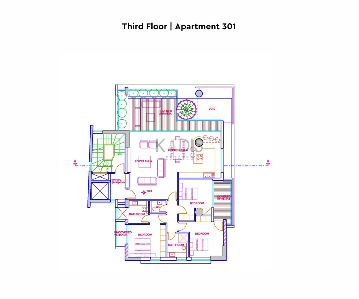 •3rd Floor: Apartment 133m2, Veranda 28m2