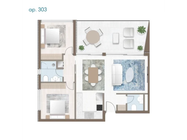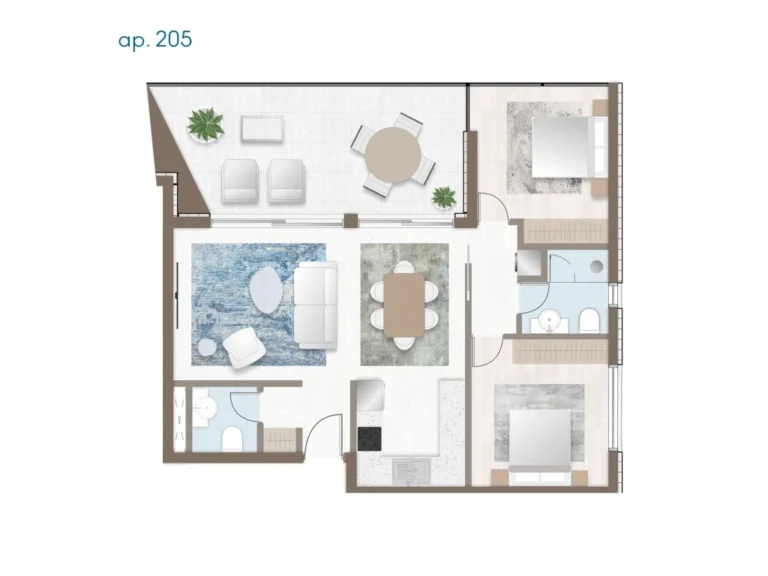This stylish two-bedroom residence is part of a modern residential community on the hills of Limassol. The apartment combines privacy with easy access to the city’s lifestyle. Large windows open up to breathtaking views of the sea, horizon, and cityscape. Blending nature with comfort, this property is a perfect choice both for living and investment.