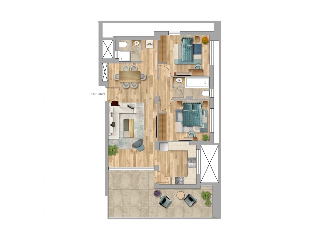 – Two luxurious bedrooms.