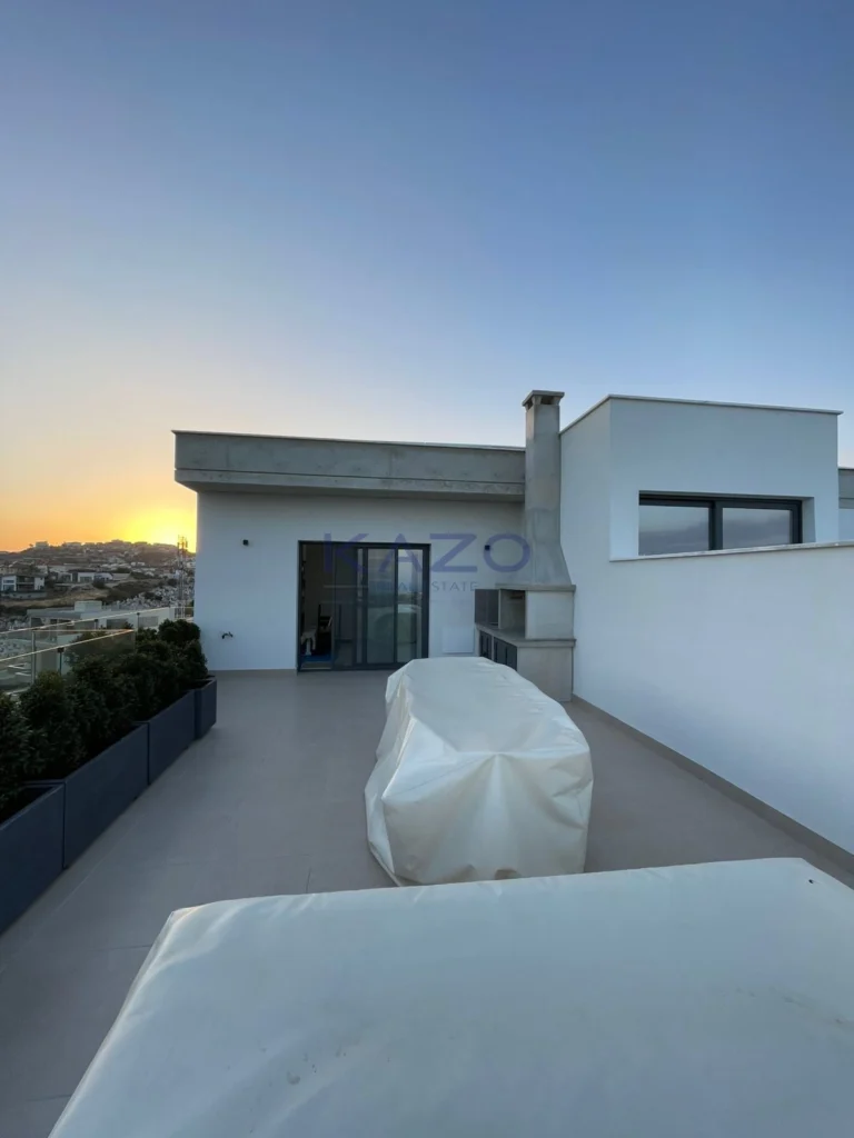 Built-in barbecue area on Roof Garden with adjacent sink and storage room