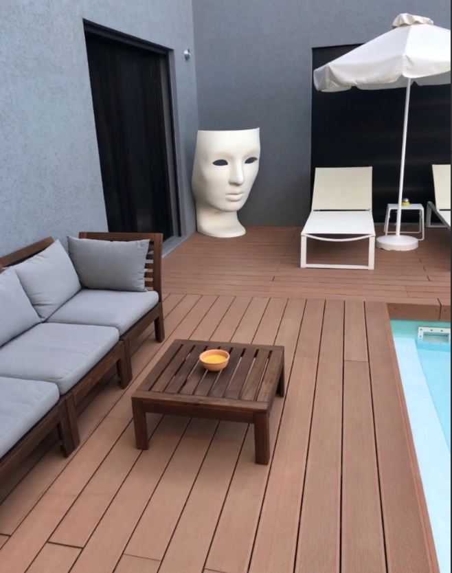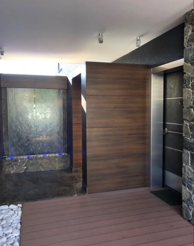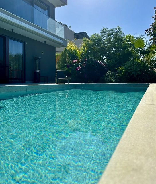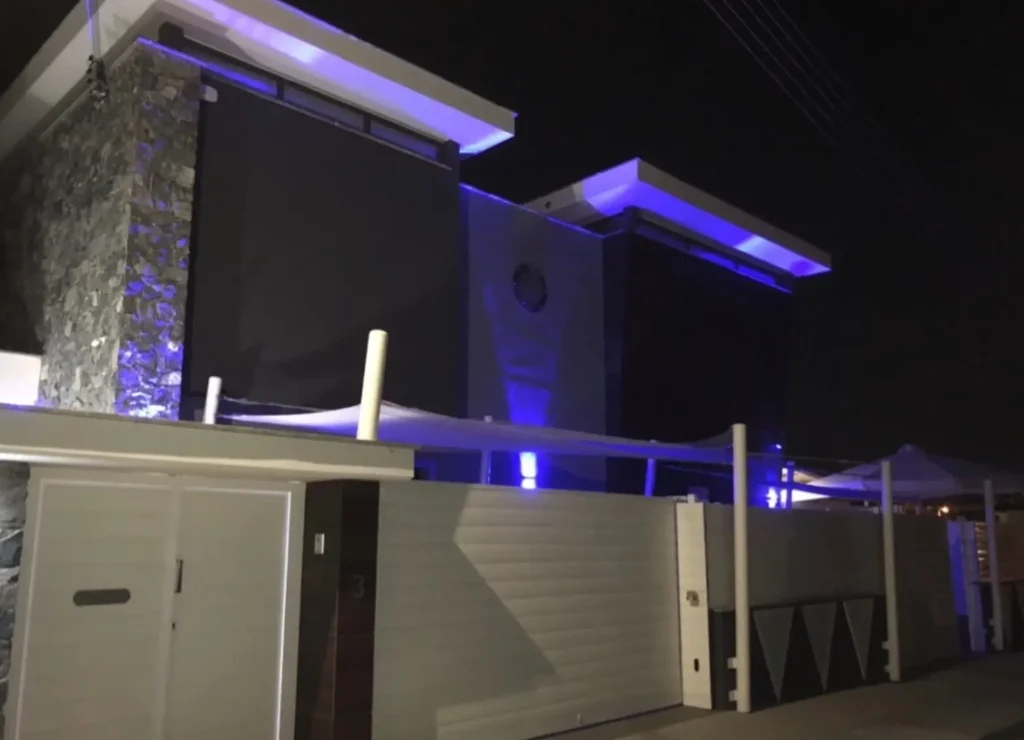 It has all the comforts, jacuzzi, pool, sauna, professional indoor bar, pool bar, modern luxurious library, luxurious wardrobe in an extra room, 6 tvs, 3 big fish tanks, CCTV, alarm system, waterfall and many other.