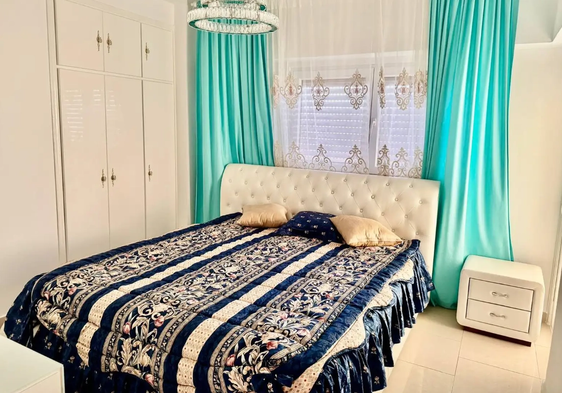 The apartment is fully furnished with contemporary décor and features a modern kitchen equipped with high-quality appliances and all necessary amenities for daily living. Each room is thoughtfully designed to provide a bright, airy atmosphere, making it ideal for both short- and long-term stays.