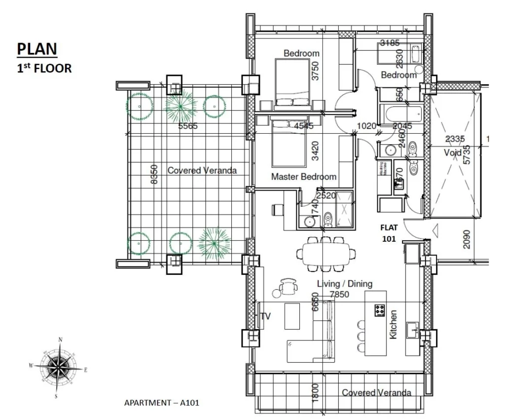The south edge of the project abuts on the Green Area of 3080m