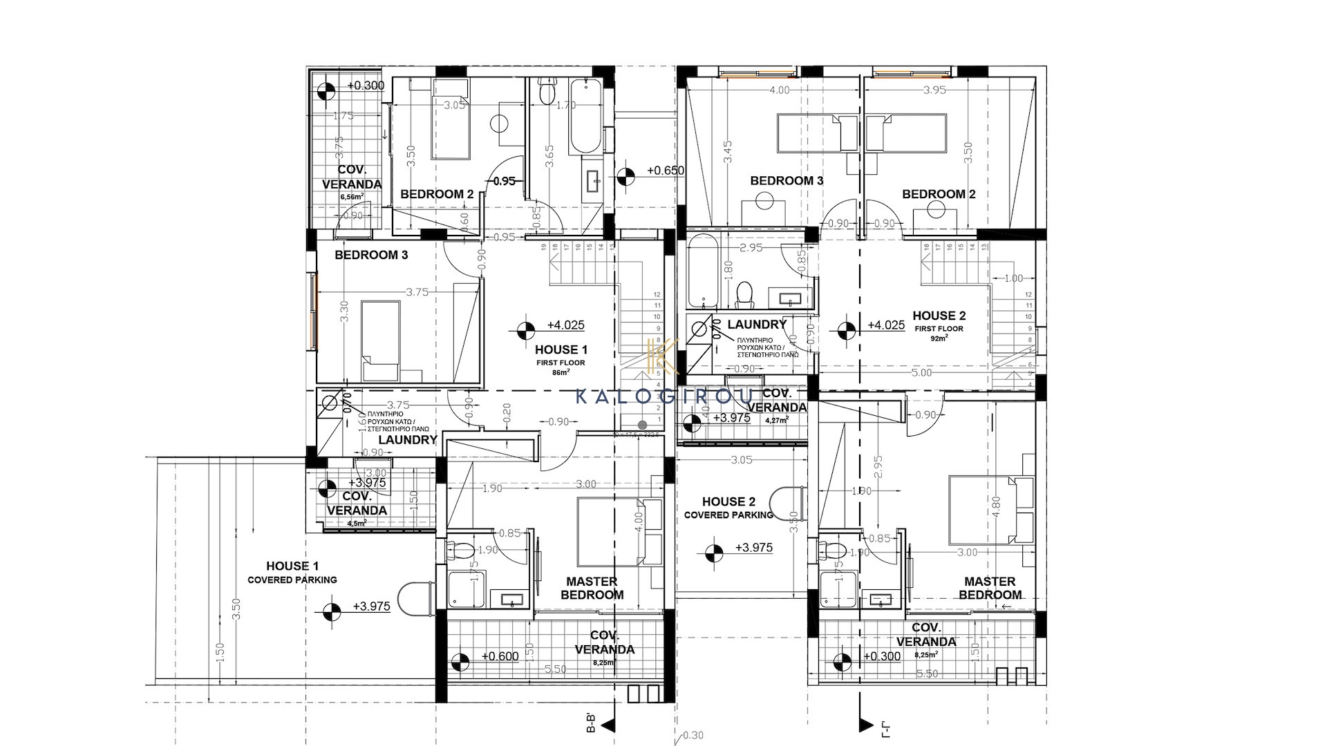 Double storey house for sale in Ekali area, Limassol district. The house offers 185 sqm living area, 226 sqm covered areas & 257 sqm plot area. The ground floor consists of an open plan kitchen, living & dining area, a shower room, guest bedroom, two covered verandas (front and back) and 2 storages. The first floor consists of a main bathroom, laundry space, 3 bedrooms and 2 covered verandas. Master bedroom is en suite & with veranda access (front side). In addition, there is double covered parking space.