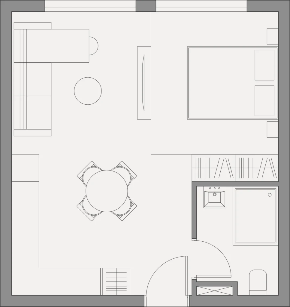 Studio with an internal area of 40 m² is located on the second floor of a seven-story building in Block A.
