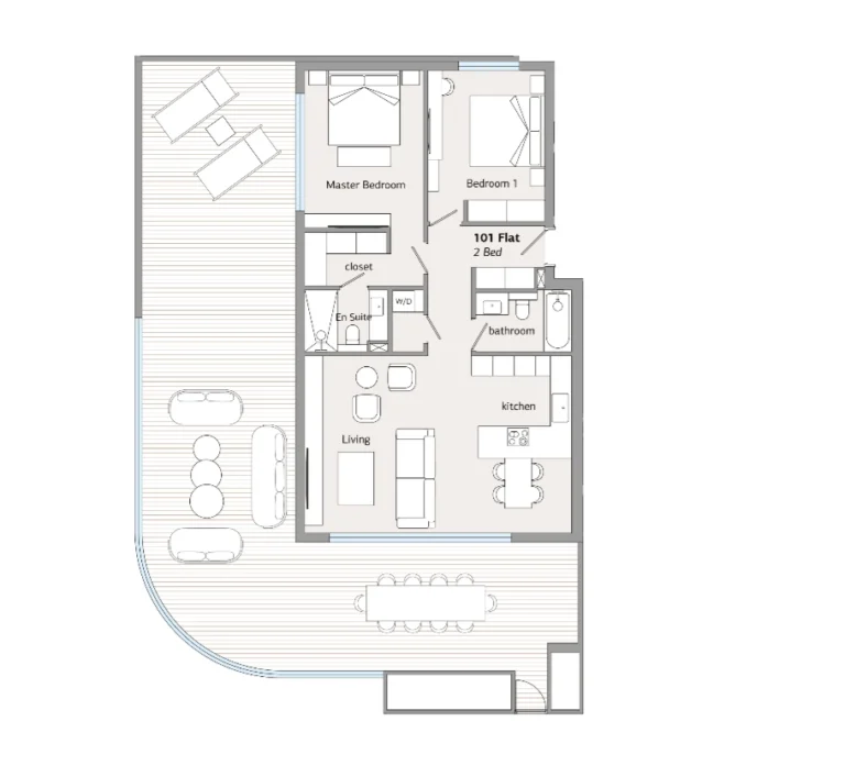 This stylish 2-bedroom apartment offers a beautifully balanced living environment where calm suburban surroundings meet refined modern design. The open-plan living and dining area is bright and inviting, framed by large windows that capture natural light and highlight the seamless connection between indoors and outdoors.