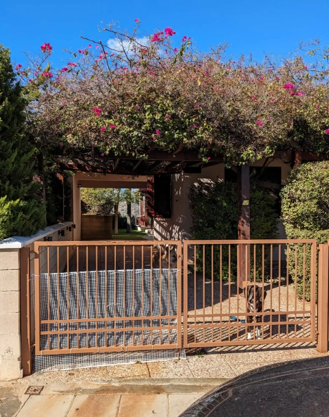 Mature garden with new irrigation system.