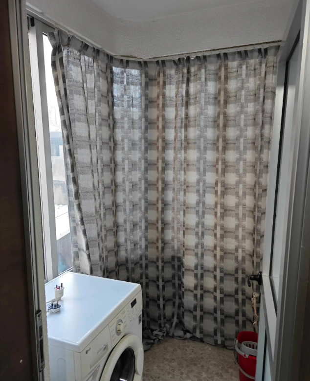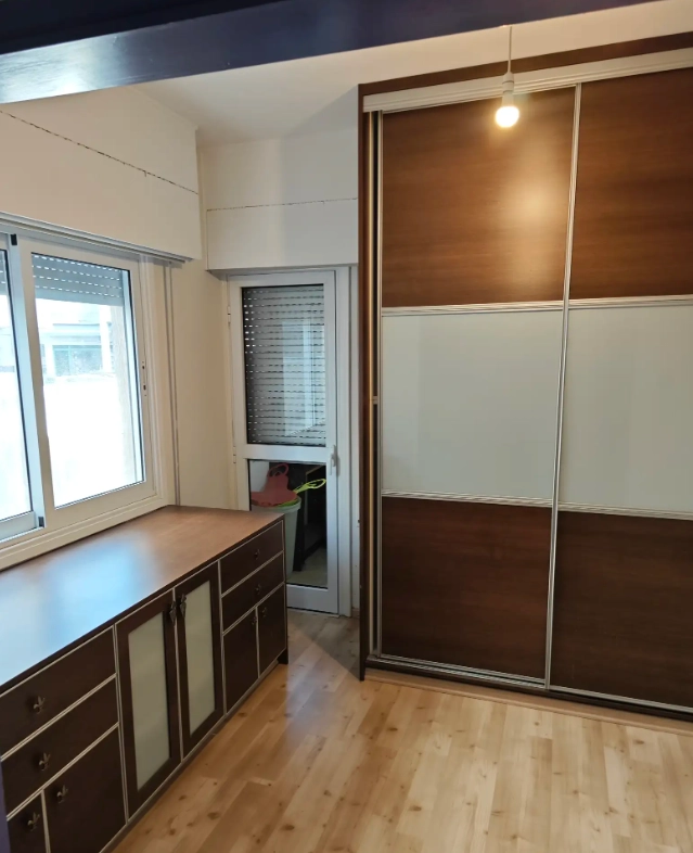 Each of the three bedrooms is generously sized, with plenty of natural light and storage potential. The apartment includes one bathroom, and air conditioning is installed in all rooms, ensuring comfort throughout the year.