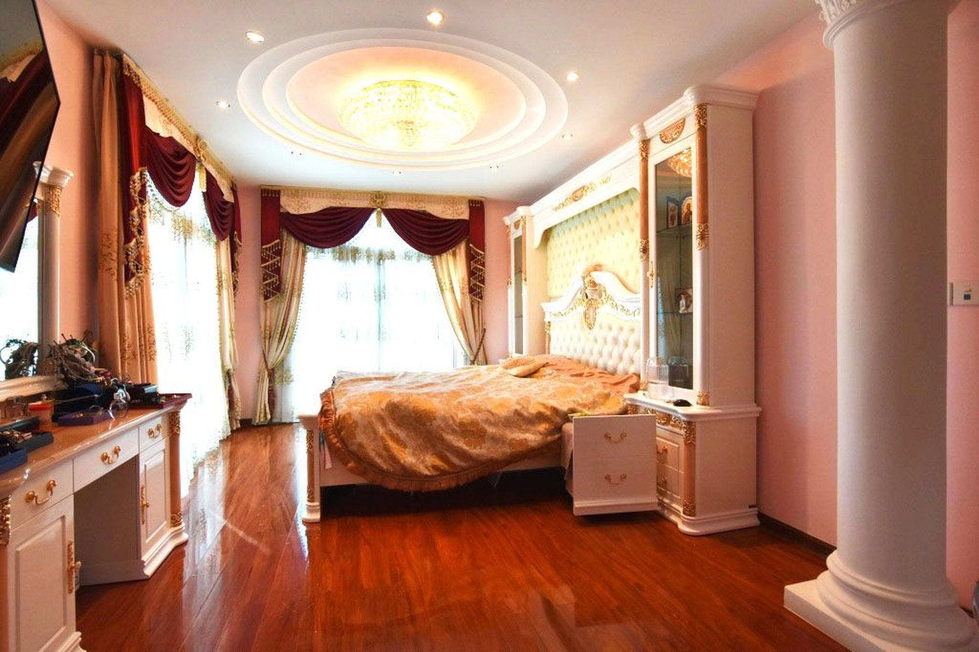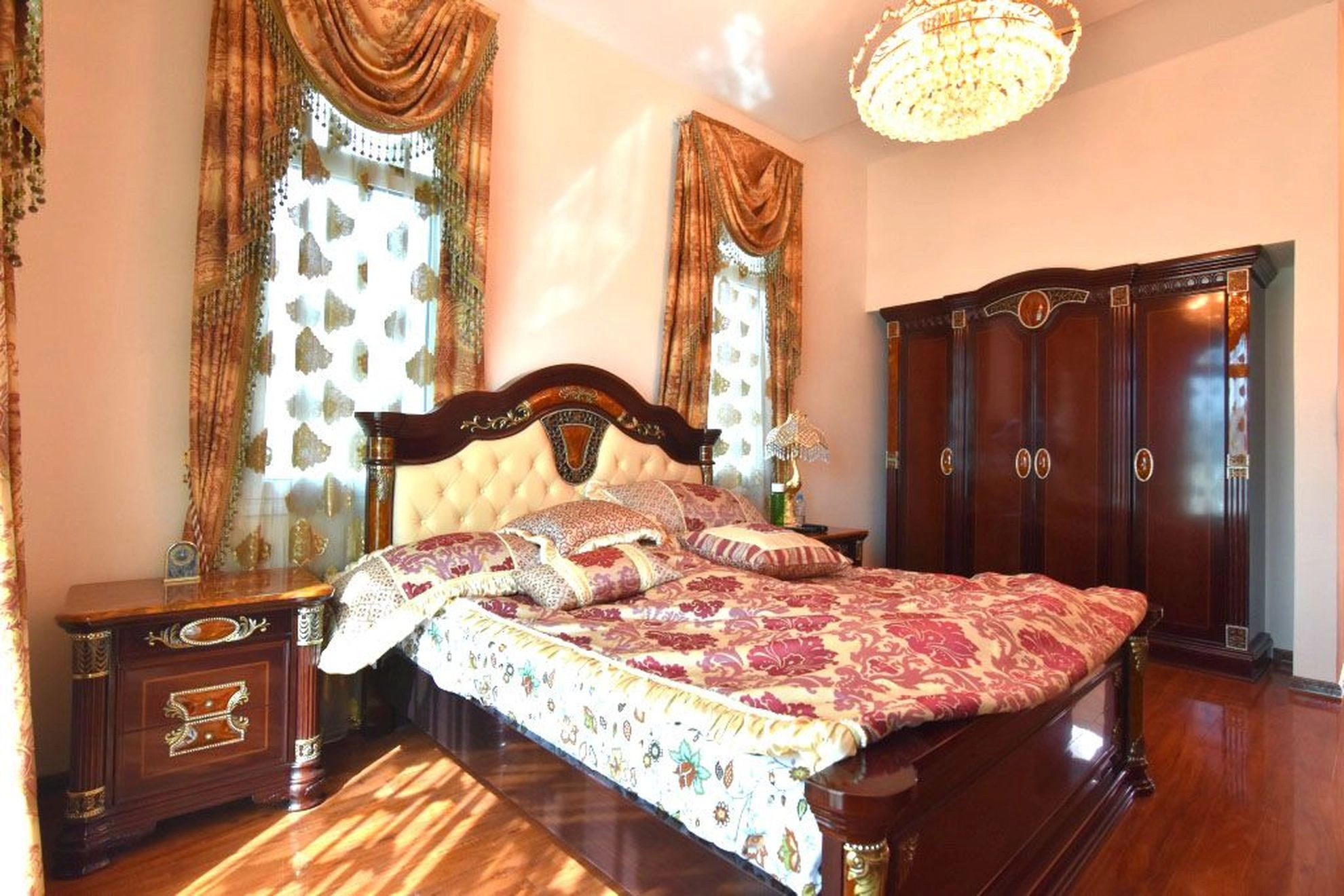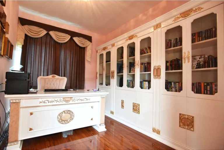 This aristocratic style villa is located in a prestigious residential area of Limassol at the top of the hill and has beautiful views to Limassol bay. The house comprises of 5 bedrooms, 5 bathrooms, 2 kitchens, 2 steam saunas. It also has a underfloor heating, a fireplace, alarm system, central heating, satellite TV and many other features. The house is beautifully landscaped with the gardens, has a swimming pool, car park areas, automatic gates. The villa is set on a big plot of land with the area of 1600 sq.m.