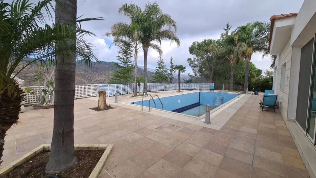 The villa is situated in Kalo Chorio village, over 20 kilometers from Limassol. Fitted with thermo-insulation shell all around the villa.  Specifications: • Fully centrally heated• Fireplace with wood• 5 Bedrooms  (two of them en suite)• 3 Bathrooms• Guest toilet • 2 living rooms• Dinning room• Double glazed windows• Alarm system• Covered parking• Pool sauna shower and toilet• BBQ Area by the pool• Large garden• Patio of 500m2• Pergola with dinning area by the pool• Automatic irrigation system• Large garden with palm trees, pine, and fruit trees  Currently villa is rented out.