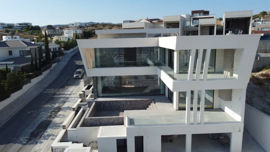 The villa is located in one of the most prestigious areas in Limassol with an unobstructed sea view and it is five minutes by car towards the beachfront. It combines both panorama hill and beachfront like walking on a fantastic bridge joining the two environments together. Constructed with generous proportions, using top quality building materials and finished to the highest of standards. It comprises a total of six en-suite bedrooms, comfortably spread out across three floors. The residence is fitted throughout with premier quality materials and finishes, with every corner carefully tailored for ultimate quality and style. Option for an additional plot of 697sqm with 1.500.000+VAT euros extra. The Project has EPC certificate with “B” Energy Efficiency Rating.