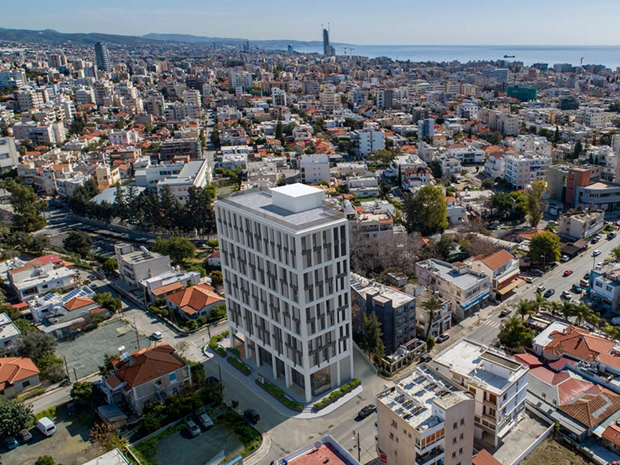 The commercial development is located in the heart of Limassol. It combines 8 floors of commercial space for 16 offices, all designed in such a way that allows for ultimate sustainability and efficiency. A double-height lobby sets the tone for this ultra-modern building, while full-height glazing on each floor creates a light-filled workspace that optimizes comfort, at the same time offering views of the whole city below. With ample space for two offices on each floor, these workspaces are fully flexible and customizable over a 400 square meter layout, accommodating businesses of any size and stature. Bright, spacious and versatile, office accommodation also integrates strong environmental sensibilities across every floor to maximize output and minimize costs. Every office also features its own spacious terrace and is equipped with restrooms and kitchenettes. The Project has EPC certificate with “A” Energy Efficiency Rating.