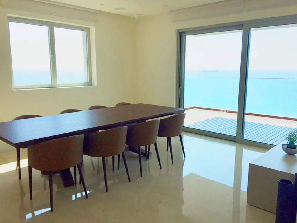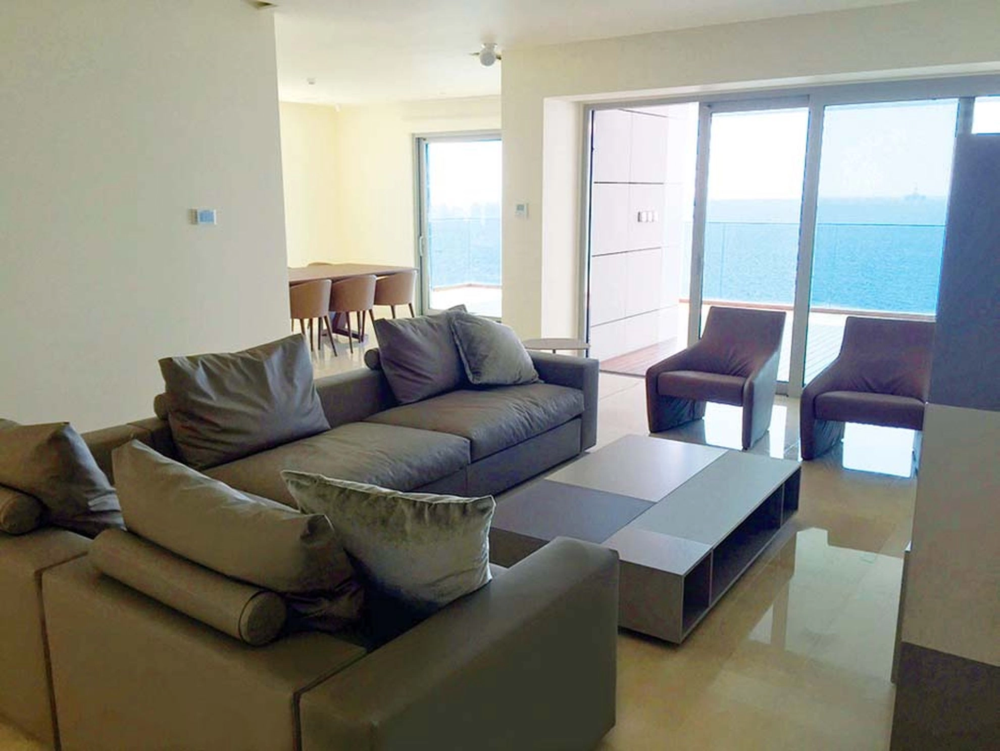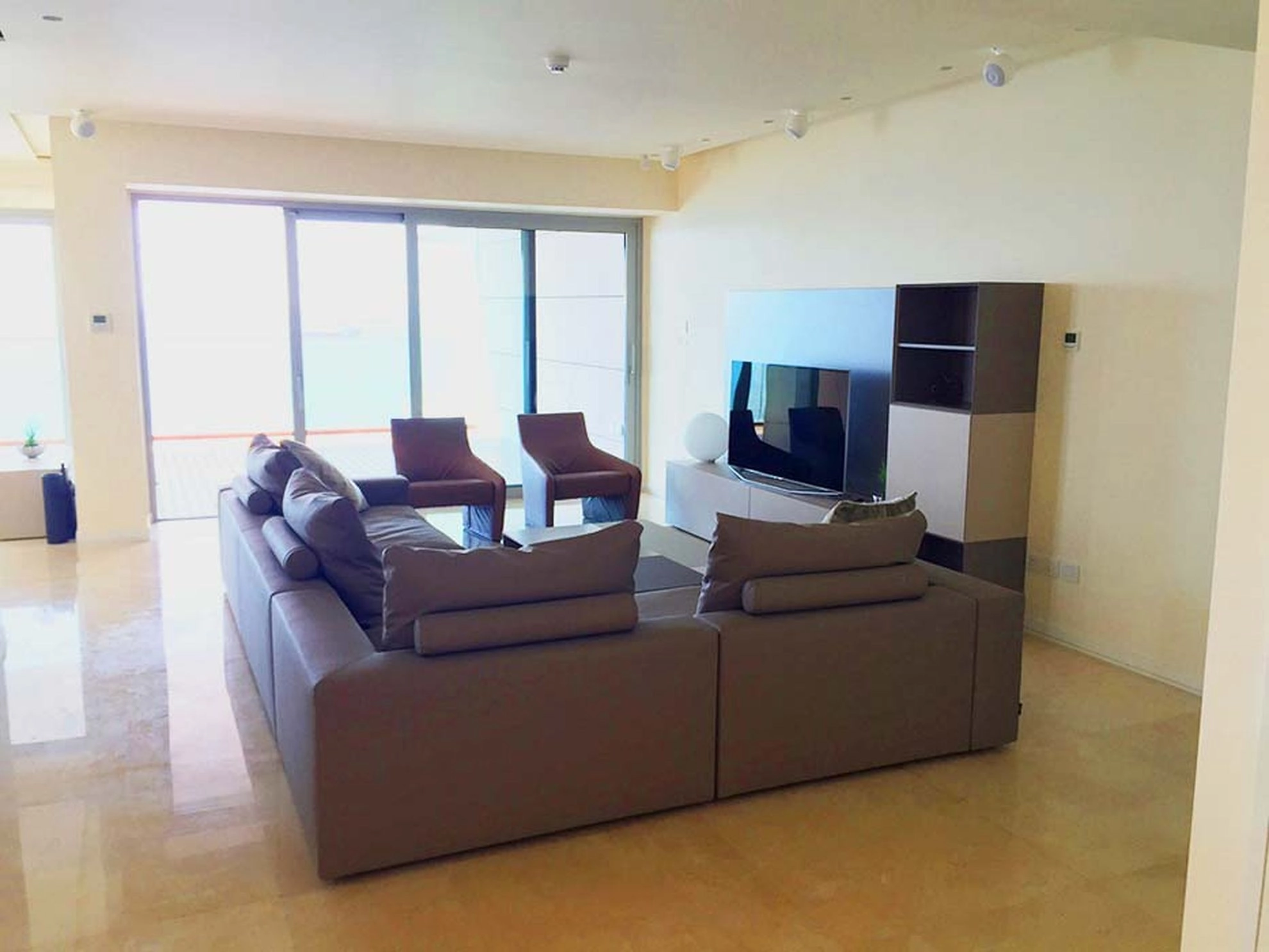 This is a luxury 3 bedroom apartment on the 10th floor of the seafront Residence in Limassol. It was two apartments combined into one. This spacious apartment also has 4 covered parking spaces and 2 covered storage rooms. The development includes round the clock control and service by a 5 star management along with a 24/7 reception, luxurious relaxation area, indoor pool and hydromassage, treatment rooms, gym and various other amenities. Rental Income: €10,000 to €13,000 per month depending on the month. (Currently rented out for €10.000 p/m but the tenant may vacate if a buyer wants vacant possession). Low Season: October to May – €10,000 High Season: June, July, September – €12,000 High Peak Season: August – €13,000