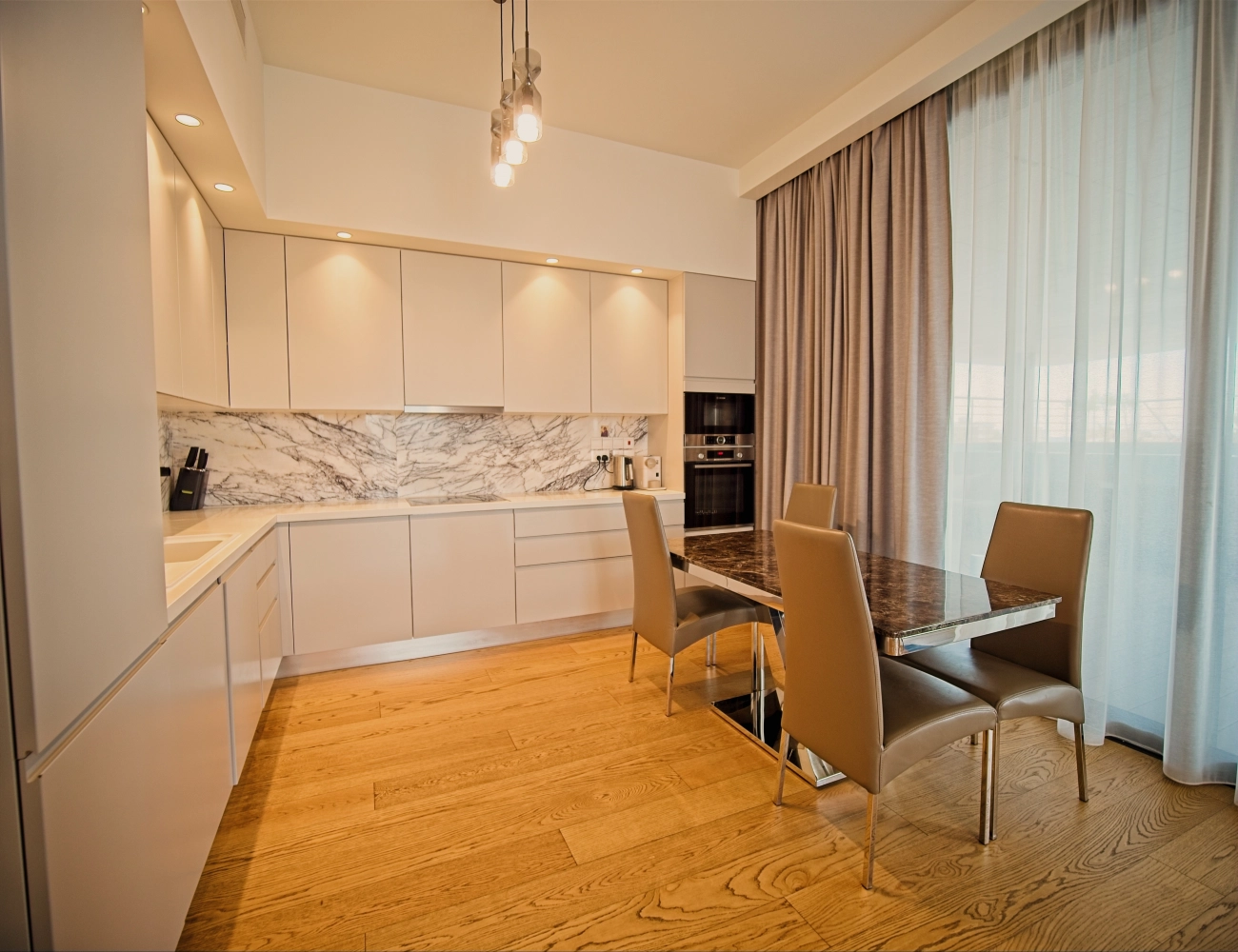 The penthouse is located in a gated complex of apartments, in 550 meters to the beach, in Limassol tourist area. The penthouse is unfurnished however is equipped with Bosch kitchen appliances, has a VRV system.