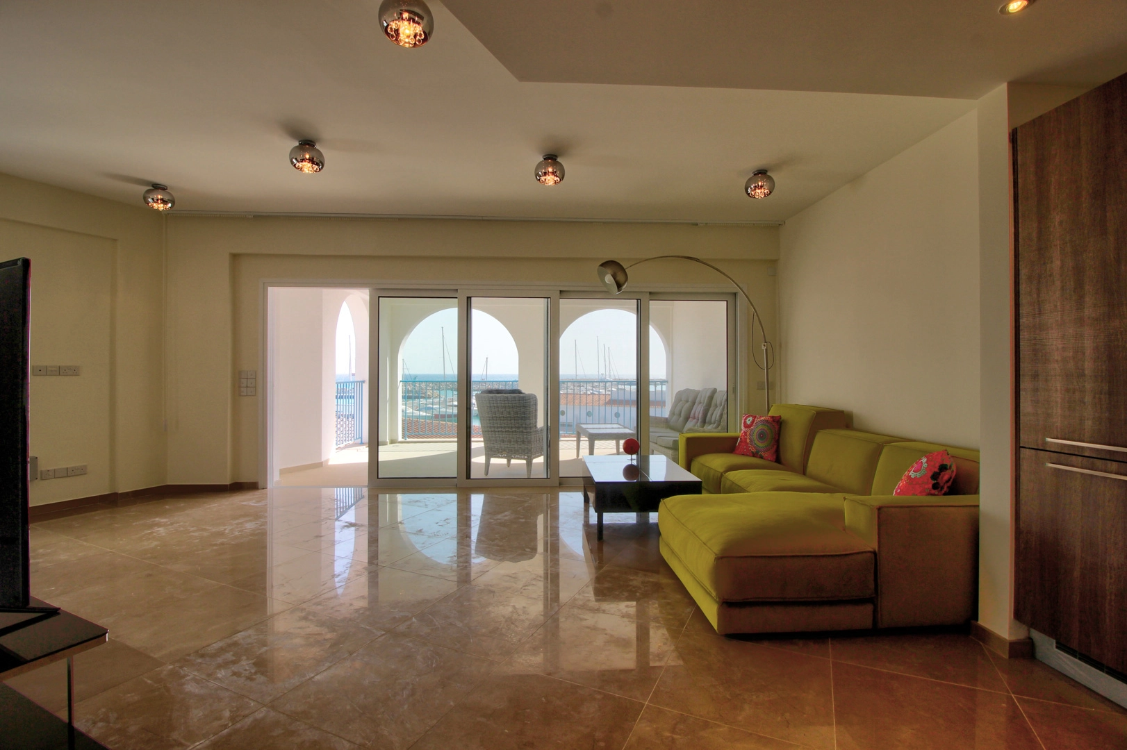 Luxury 1 bedroom apartment in Limassol Marina with panoramic views of the Mediterranean Sea. The apartment is fully furnished and equipped. No one has ever lived in the apartment. Two spacious verandas, bathroom and dressing room. The apartment is located in a closed complex with all amenities. On the territory of the apartments is located swimming pool and recreational area, which belongs only to this building. Within walking distance to all necessary infrastructure, including water sports and much more.