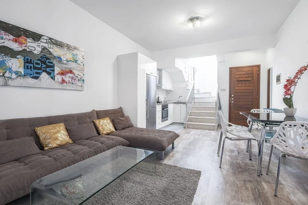 This maisonette is located in the Potamos Germasogeias neighborhood, just a short walk from the beach. The townhouse has 1 bedroom, 1 bathroom, a fully equipped kitchen, a veranda, and access to a communal pool. It is fully furnished and equipped.