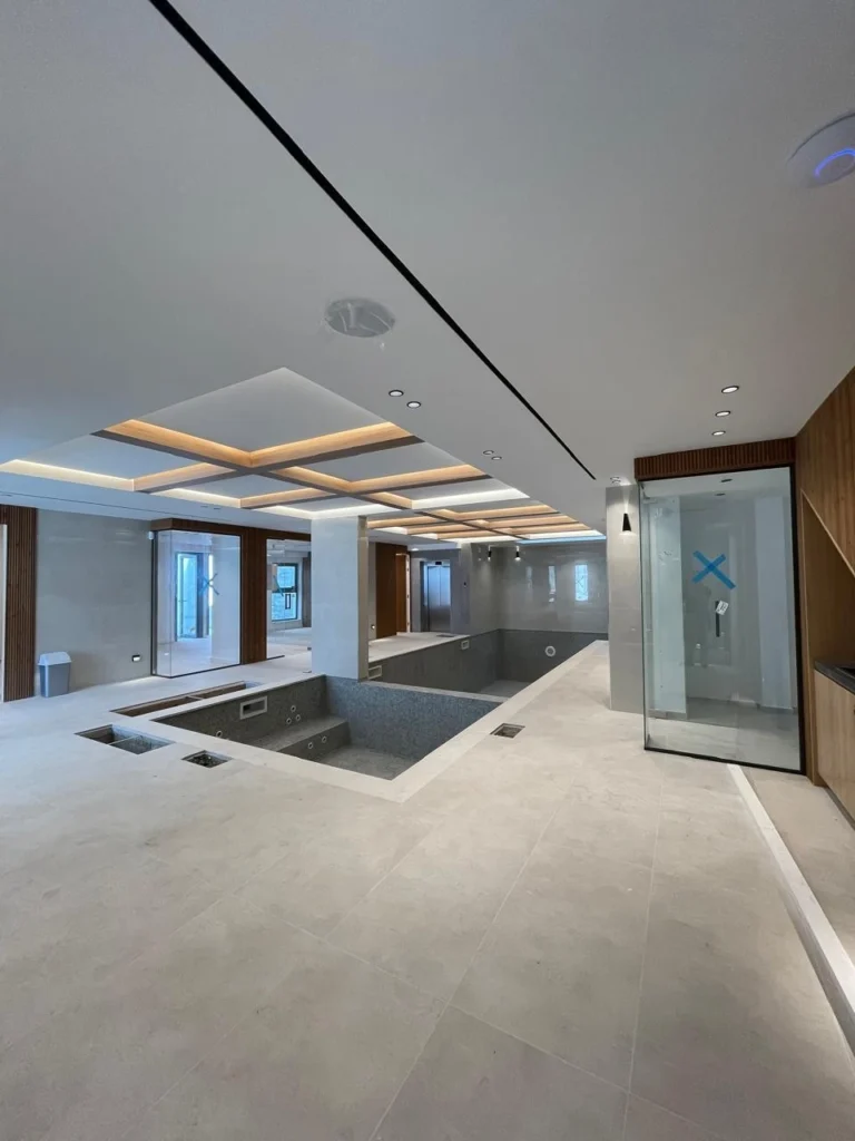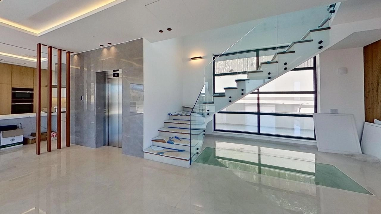 This luxury 5-bedroom house, 3 of which are en-suites with private bathrooms and showers, features a master bedroom with a walk-in wardrobe and a separate staff room with a private entrance.The house spans 4 floors, with large covered verandas and a rooftop garden with a BBQ area. It includes indoor and outdoor saltwater swimming pools (indoor is heated), a 10-person jacuzzi, and a spacious sauna. The property also features a gym, laundry room, 35 sqm playroom, home cinema with a 4K projector and audio system, and a server room.There are three fully covered parking spaces. Full automation (smart home) controls lighting, curtains, multimedia systems, and climate through touch panels throughout the house. All floors have water-based underfloor heating and VRV air conditioning systems. Decorative ceilings, Wi-Fi access points, and electric doors with phone access are integrated. The house also includes water pressure, softener, hot water circulation systems, and solar panels. Elevator access to all floors.High-end finishes, security, and video surveillance systems. Panoramic sea views. Quiet neighborhood with new private houses.