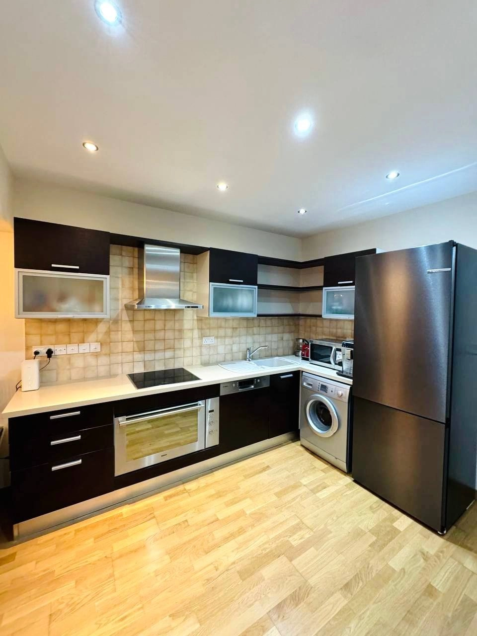 An apartment by the sea with a side sea view, located on the front line in a building constructed in 2008. The building features its own grounds with a garden, swimming pool, outdoor shower area, and direct access to the beach. For active leisure and sports activities, the complex is equipped with a gym and a table tennis room.The apartment boasts a spacious open-plan kitchen and living area with access to a balcony and large floor-to-ceiling windows that allow you to enjoy the side sea view. The high-quality renovation is thoughtfully designed, in perfect condition, and requires no additional investment.Project Features: Floors: Parquet flooring Walls: Covered with washable paint Kitchen: Equipped with modern Bosch appliances in excellent condition Bedrooms: Each has built-in wardrobes and double beds Climate Control: Split air conditioning system installed in every room for a comfortable environment First Bathroom: Equipped with a jacuzzi featuring lighting and musical accompaniment (radio) Second Bathroom: Includes a shower cabin with hammam (steam) function and built-in radio Storage: Room for belongings on the lower floor of the building Parking: Parking space on the premises of the complex