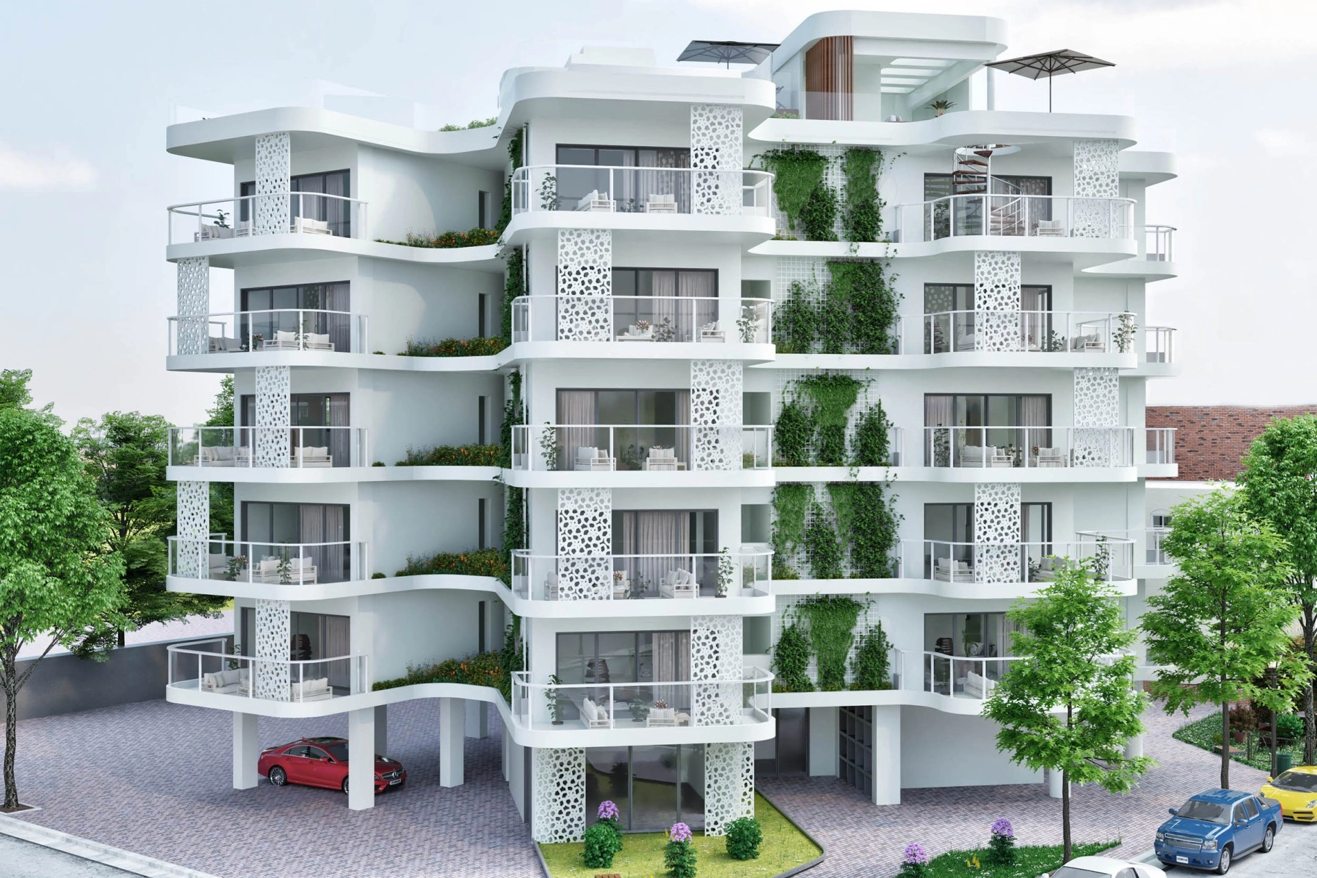 A modern residential building featuring 25 luxurious apartments is located in the heart of Larnaca, just 1,400 meters from Finikoudes Promenade and 400 meters from the new marina. Shops, pharmacies, banks, schools, and other essential amenities are all within walking distance. Each apartment comes with a private storage room, covered parking, and a spacious veranda. The top floor is dedicated to exclusive penthouses with rooftop gardens and includes a shared pool offering panoramic city views.The Project has EPC certificate with “A” Energy Efficiency Rating.