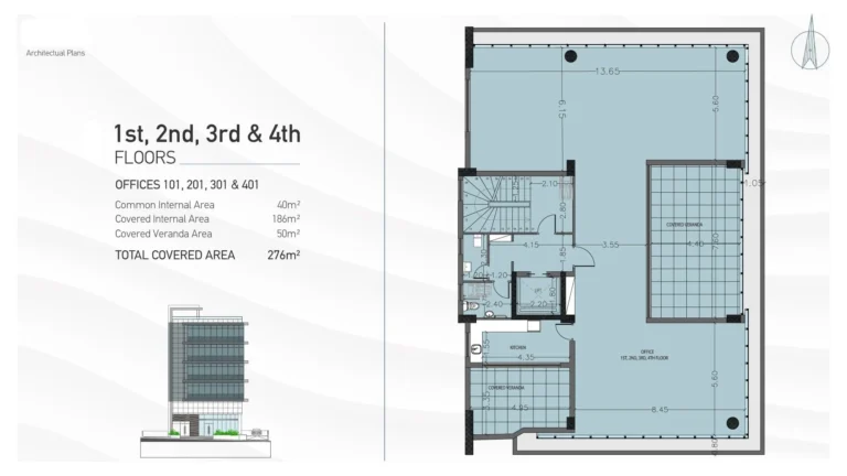 This contemporary style office tower is conveniently located in walking distance from the sea and will consist of offices with a roof terrace. The building will have in total 27 parking spaces. The development will also have store rooms as well as the lobby area. The Project has EPC certificate with “B” Energy Efficiency Rating.