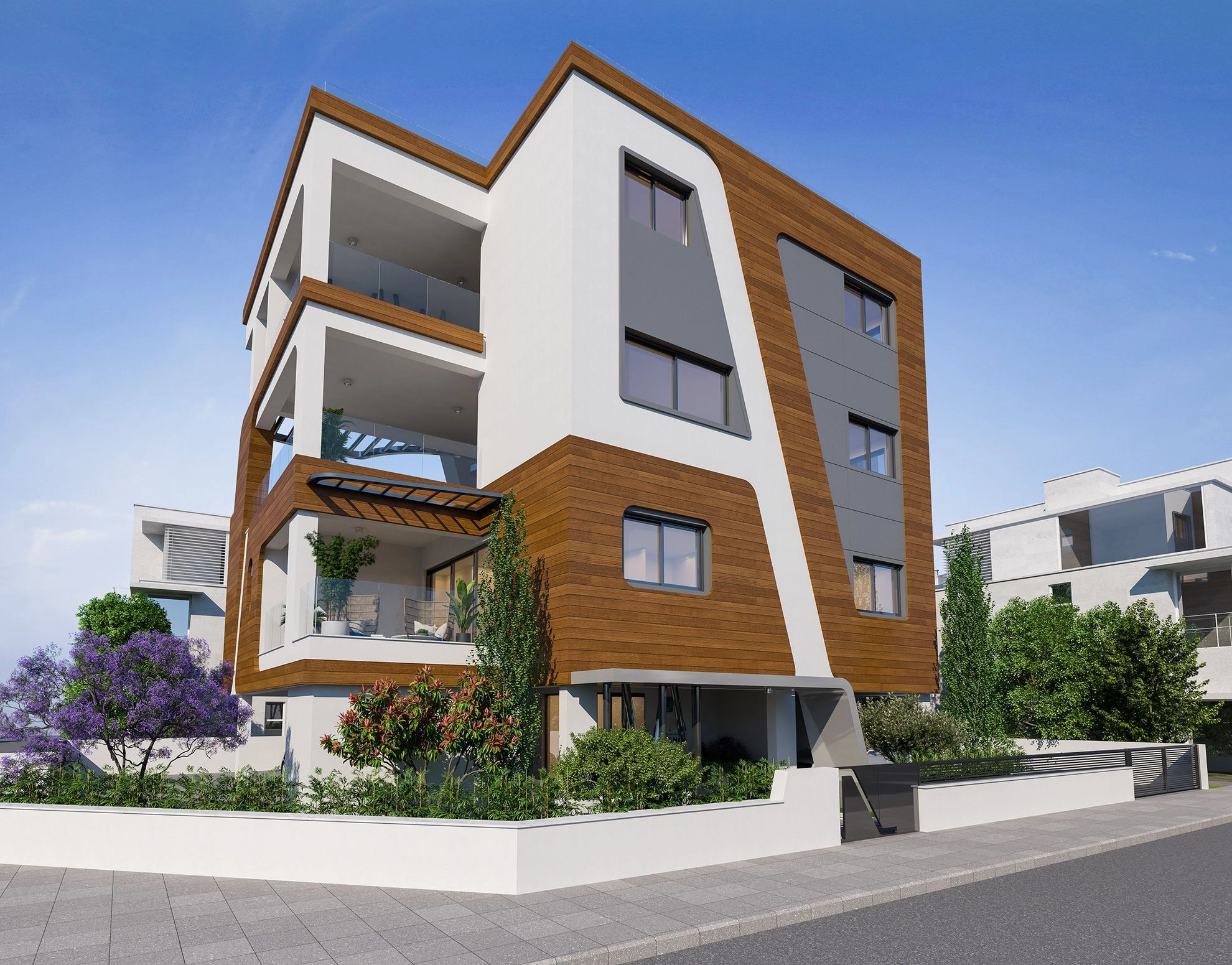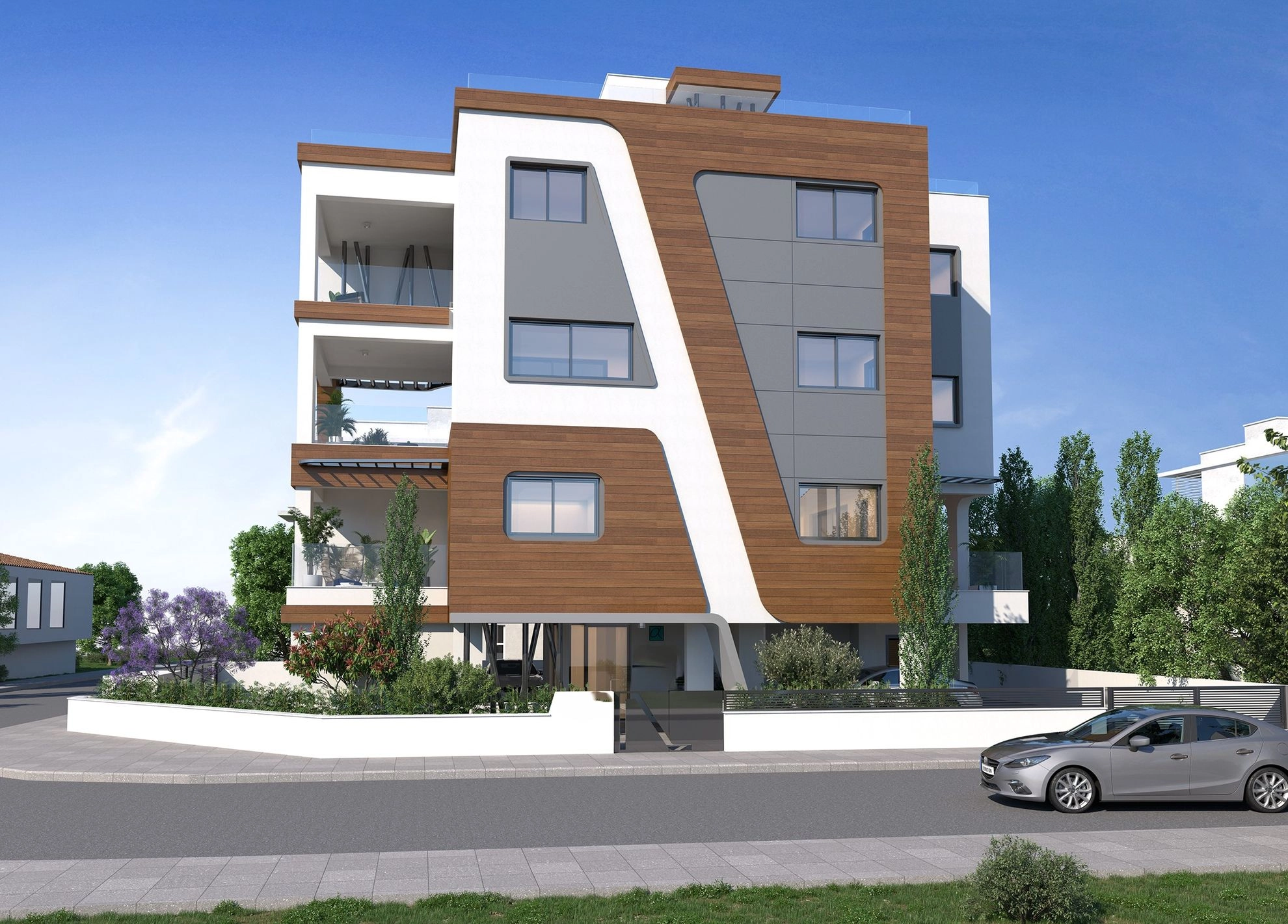 The building is an ultra-modern 3 floor development with a contemporary design. Comprising of 4 spacious apartments, including the penthouse, it is set in Germasogeia area, in Limassol. This perfect location promises its residents safety and peace of mind of living in a quiet, residential area. The building comprises of 2 and 3 bedroom apartments with quality finishes, marble floors. Generous balconies allow the residents to enjoy the views. Each apartment has an allocated storage room and a parking space. The Project has EPC certificate with “A” Energy Efficiency Rating.