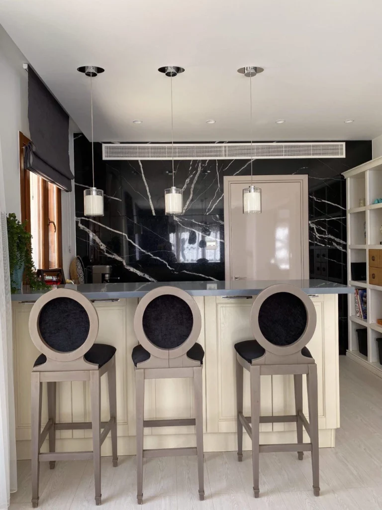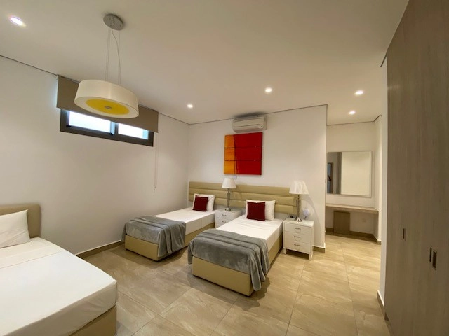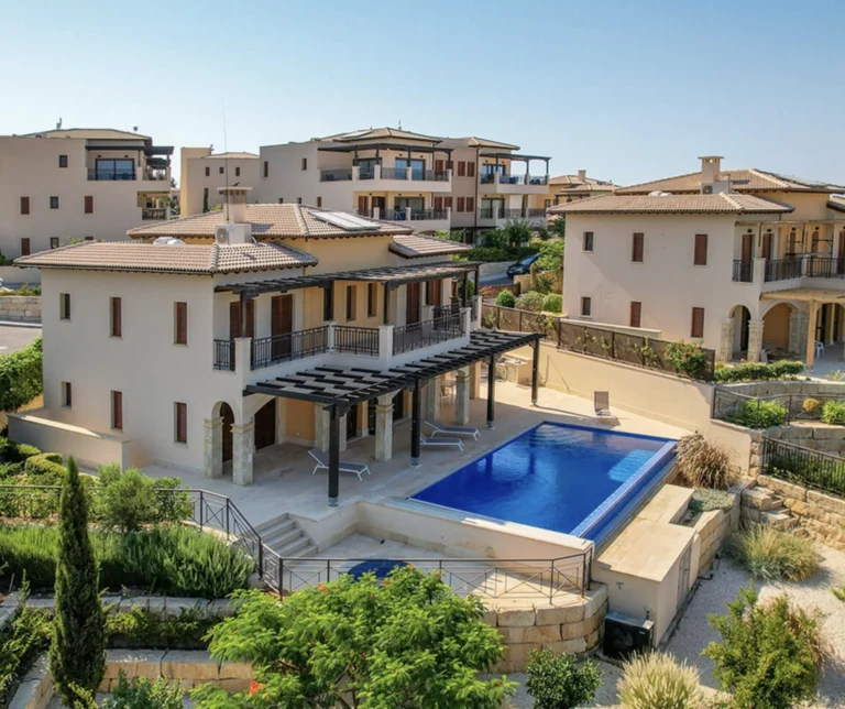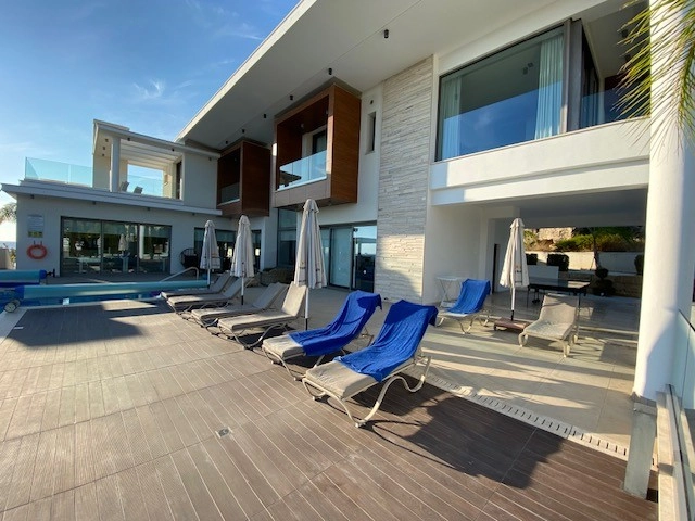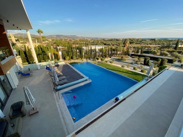 This four-level, five-bedroom villa is located 2.5 kilometers from the center of Coral Bay and within close proximity to the Sea Caves coastline. Completed in May 2019, the property offers 640 square meters of covered space and is designed to meet high standards of modern residential comfort and functionality. The villa includes a spacious open-plan layout, private leisure facilities, and panoramic sea views. The interior features five bedrooms, each with its own en-suite bathroom, as well as a home cinema, sauna, and utility room. A fully equipped kitchen is complemented by a covered BBQ area, making the property suitable for both everyday living and entertaining. Additional outdoor features include a heated infinity-edge swimming pool, a rooftop terrace with sea views, and mature landscaped gardens with an automated irrigation system. The villa is also equipped with underfloor heating, air conditioning, electric gates, a security alarm system, and CCTV surveillance. A private parking area is included on the property. Located near key amenities and within easy reach of the Coral Bay Blue Flag beach, the residence offers both a practical living environment and potential as a long-term investment. The main features of the project and the units: Location: Near Sea Caves and Coral Bay, Paphos District Plot size: 640 m² covered area across four floors Five bedrooms, each with en-suite bathroom Heated infinity-edge swimming pool Private sauna 12-seat home cinema room Fully equipped modern kitchen with quality appliances Utility/laundry room Covered outdoor BBQ and dining area Rooftop terrace with panoramic sea views Underfloor heating and air conditioning throughout Guest WC Private off-street parking Electric entrance gates Security alarm system and CCTV surveillance Fully irrigated mature landscaped gardens Completed in May 2019 2.5 km from Coral Bay center Short drive to shops, restaurants, and services EPC certificate with “A” energy efficiency rating