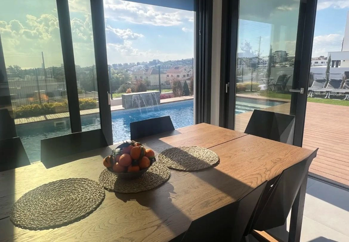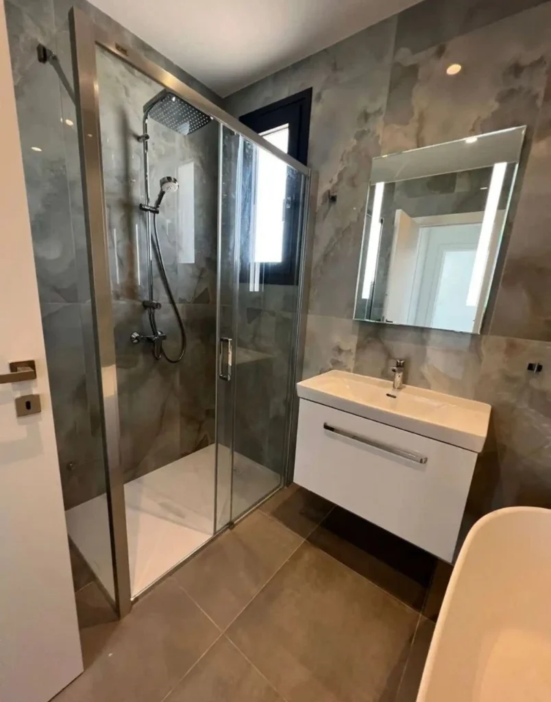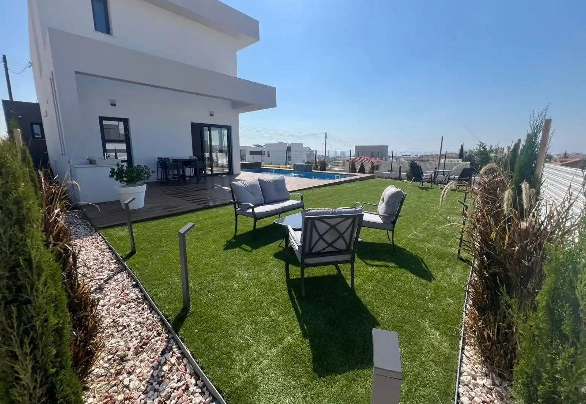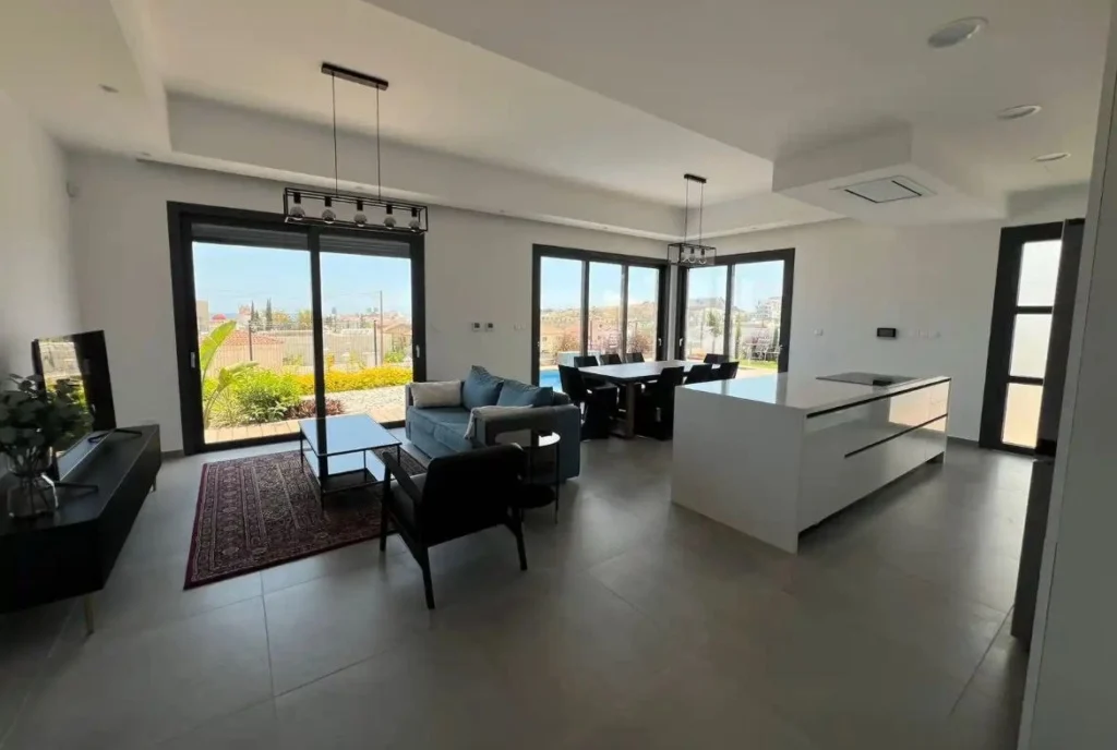 This villa includes 4 bedrooms, each with an en-suite bathroom, underfloor heating, hidden air conditioners, a private pool, garden, BBQ area, and a double garage. The property is also equipped with 7 kW solar panels, security, and water filtration systems. The villa is situated just 5 minutes from the Agios Athanasios roundabout, 1 minute from Foleys School, and approximately 10 minutes to the beach. Four spacious bedrooms, each with an en-suite bathroom, Laufen sanitary ware, and glass shower enclosures by Epiphaniou. The master bedroom features a walk-in wardrobe, freestanding bathtub, and separate shower. Panoramic sea view and a nearby green area that cannot be developed. This villa is ideal for both comfortable living and investment opportunities. The Project has EPC certificate with “A” Energy Efficiency Rating.