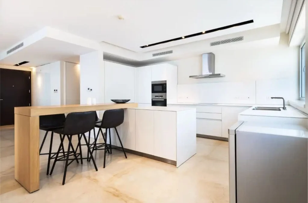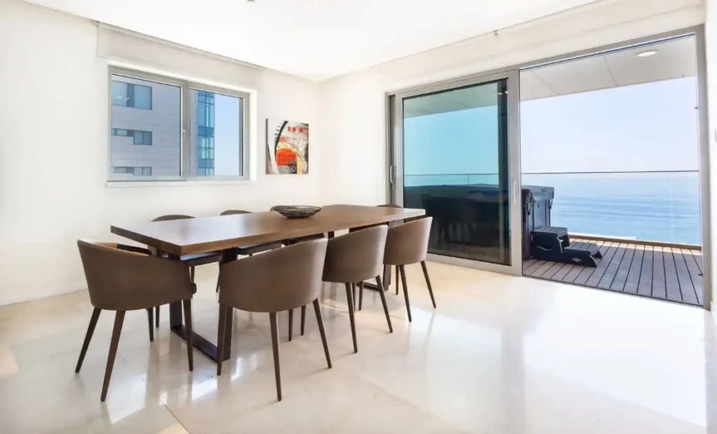 This three-bedroom apartment is located in a seafront residential complex in Limassol and offers a spacious interior layout with sea views. Originally designed as two separate units, the apartment was merged during construction into one large residence, resulting in generously sized bedrooms and expanded living space. The layout includes a large living and dining area, three bedrooms with built-in wardrobes, a walk-in closet, and a private living zone separated by doors for added privacy. The apartment also features one bathroom with a shower, an additional shower room, and a guest toilet. Underfloor heating and a Daikin VRV air conditioning system ensure a comfortable living environment throughout the year. The apartment is fully furnished and equipped with high-end appliances, including Miele kitchen equipment and Hansgrohe bathroom fittings. A private terrace with a jacuzzi offers additional outdoor space. The unit has access to a secured beach path, monitored entry to covered parking via electronic key, and is equipped with an intercom, alarm system, fire detection, and motion sensors. The residential complex provides a wide range of communal amenities suitable for both permanent living and long-term investment. The main features of the project and the unit: Total area: 227 m² 3 bedrooms with built-in wardrobes Walk-in closet Private living area separated by doors 1 bathroom with shower, 1 additional shower room, 1 guest toilet Underfloor heating VRV air conditioning system (Daikin) Private terrace with jacuzzi Sea view Electronic key access to secured parking Private access to the beach via a secured path Fully furnished with Miele appliances and Hansgrohe fixtures Alarm system, fire detection, and motion sensors Concierge service and 24/7 security Video intercom system Swimming pool Spa and fitness center Tennis court Kids’ club Pool bar The project has an EPC certificate with “B” energy efficiency rating.