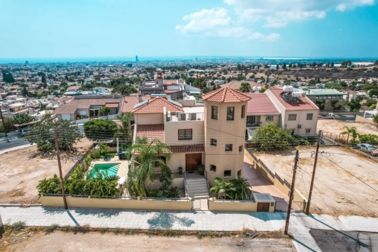 Located just a 5-minute drive from Heritage School, this detached house in the Agia Fyla area offers panoramic views of the sea and city. Built in 2010, the home spans three levels and is positioned on a 580 m² plot with a total covered area of 487 m². The internal layout includes four bedrooms, a separate office, and a maid’s room. The ground floor features one bedroom with en-suite facilities, a guest WC, a large living area with fireplace connected to the central heating system, and an open kitchen. Two verandas and a barbecue area complete the outdoor living space. The first floor offers three bedrooms, one shared bathroom, and a master suite with private bathroom, walk-in wardrobe, sauna, and steam bath. The second floor leads to a rooftop garden with open views. The basement level includes a secure two-car garage with electric gates, a spacious office, an additional kitchen, a bathroom with shower, and a covered veranda. The property is equipped with full air conditioning, a photovoltaic system of 7kWh, and a 4x8m heated swimming pool. It is offered fully furnished and includes all appliances. The main features of the villa: Plot size: 580 m² Covered area: 487 m² 4 bedrooms + office + maid’s room Heated swimming pool (4x8m) Rooftop garden with sea and city views Fireplace connected to central heating Full air conditioning in all rooms Photovoltaic system (7kWh) Sauna and steam bath Secure garage for 2 cars with electric gates Additional kitchen and bathroom in basement Fully furnished with appliances Built in 2010 Located 5 minutes from Heritage School