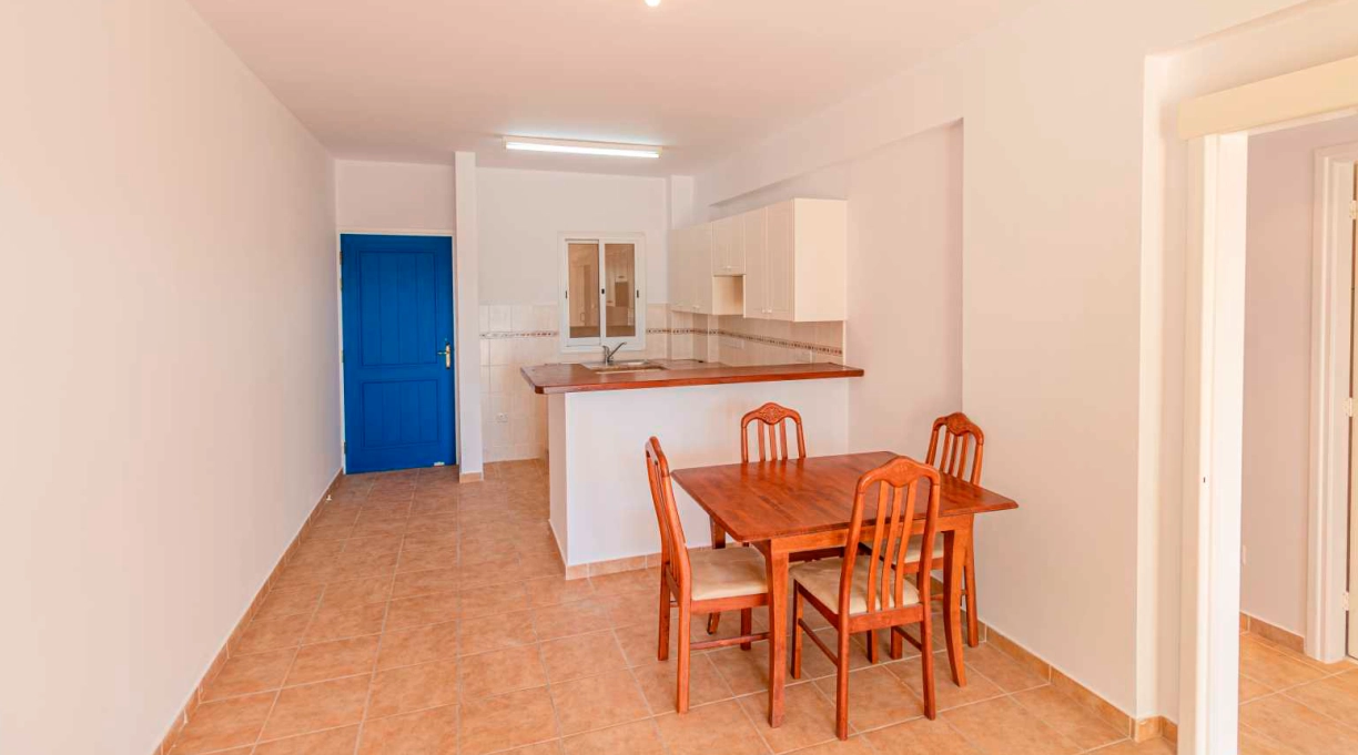 Located on the outskirts of Paphos in the area of Geroskipou, this ground floor apartment offers practical living with easy access to nearby schools, medical facilities, golf courses, and daily services. Paphos International Airport is only a short drive away, making the property suitable for both permanent residence and holiday use. The apartment features an open-plan living and dining area, a kitchen, two bedrooms, and one bathroom. Outdoor space includes a covered veranda, an uncovered veranda, and a private yard, allowing for comfortable use of both indoor and outdoor areas. Air conditioning units are installed in all rooms. The development includes access to communal features such as large swimming pools, a restaurant, a bar, and a mini market, all available within the complex. The main features of the project and the units: Location: Geroskipou, Paphos 2 bedrooms, 1 bathroom Open-plan living and dining area Kitchen Covered internal area: 67.70 m² Covered veranda: 10.50 m² Total covered area: 83.15 m² Uncovered veranda: 30.00 m² Private yard Common area: 4.65 m² Large communal swimming pools Restaurant, bar, and mini market on-site Fully furnished Air conditioning in all rooms Easy access to schools, services, medical facilities, golf courses, and airport EPC certificate with “B” energy efficiency rating