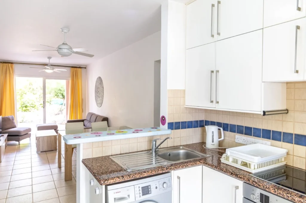 This ground floor apartment is part of a seafront residential development offering a selection of one- and two-bedroom apartments, penthouses, and detached villas. The property is designed with practicality in mind and is suitable for permanent residence, holiday use, or investment purposes. The apartment includes a living room, dining area, kitchen, two bedrooms (one with an en-suite bathroom), and a second bathroom. A covered veranda provides outdoor seating space, and the apartment also benefits from a private landscaped garden and allocated parking. Residents have access to communal facilities including two shared swimming pools, one of which is heated during the winter. The development also features a private clubhouse reserved for residents. The finishes throughout the property reflect traditional local architectural elements and materials. The location provides convenient access to golf resorts, amenities, services, and is well-positioned between Paphos and Limassol. The main features of the project and the unit: Ground floor apartment Living room Dining room Kitchen 2 bedrooms (1 en-suite) 2 bathrooms Covered veranda Landscaped garden Private allocated parking Two communal swimming pools (one heated) Clubhouse for residents Air conditioning Underfloor heating (where applicable) Safe and quiet location The project has an EPC certificate with “B” energy efficiency rating.