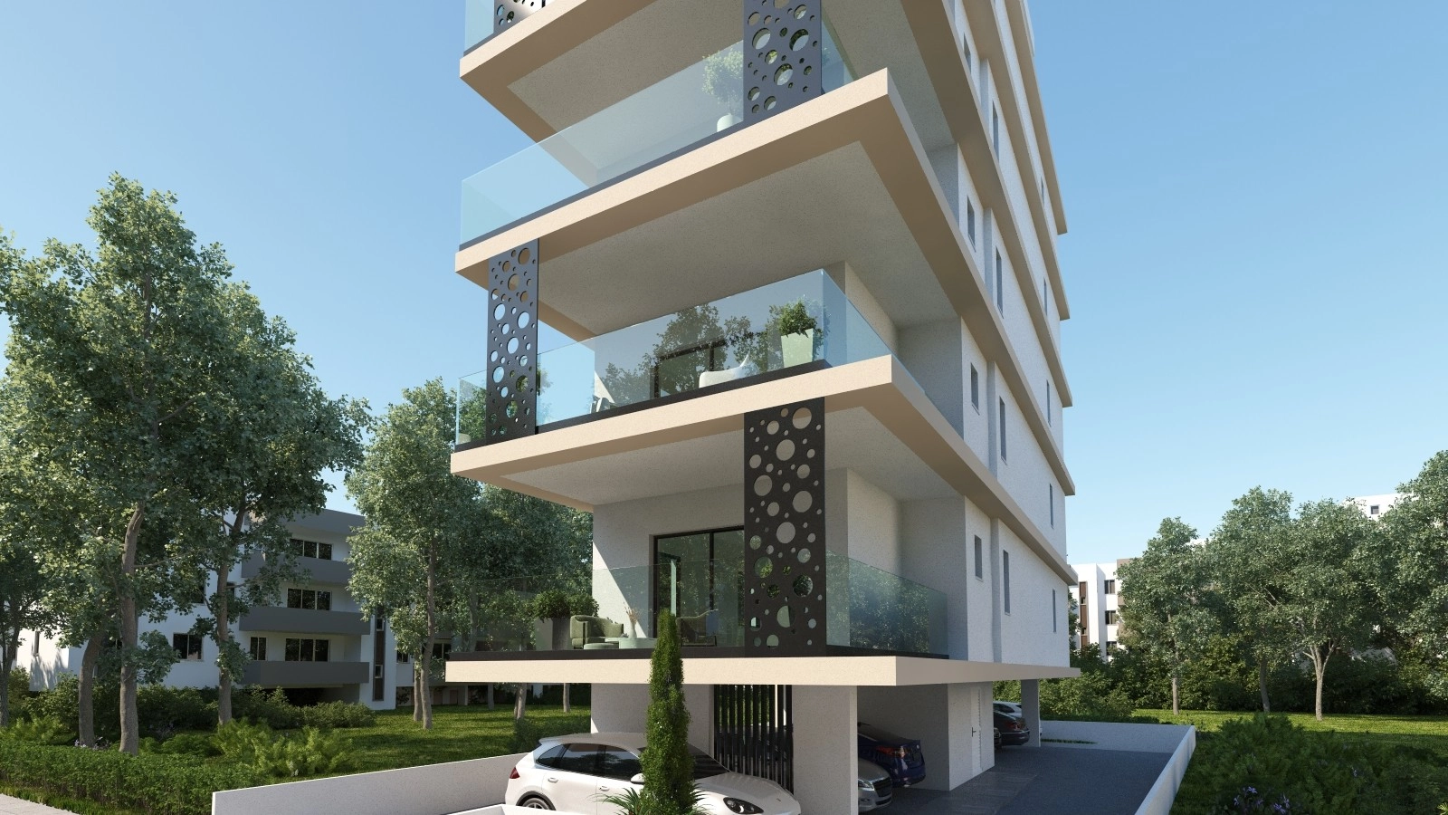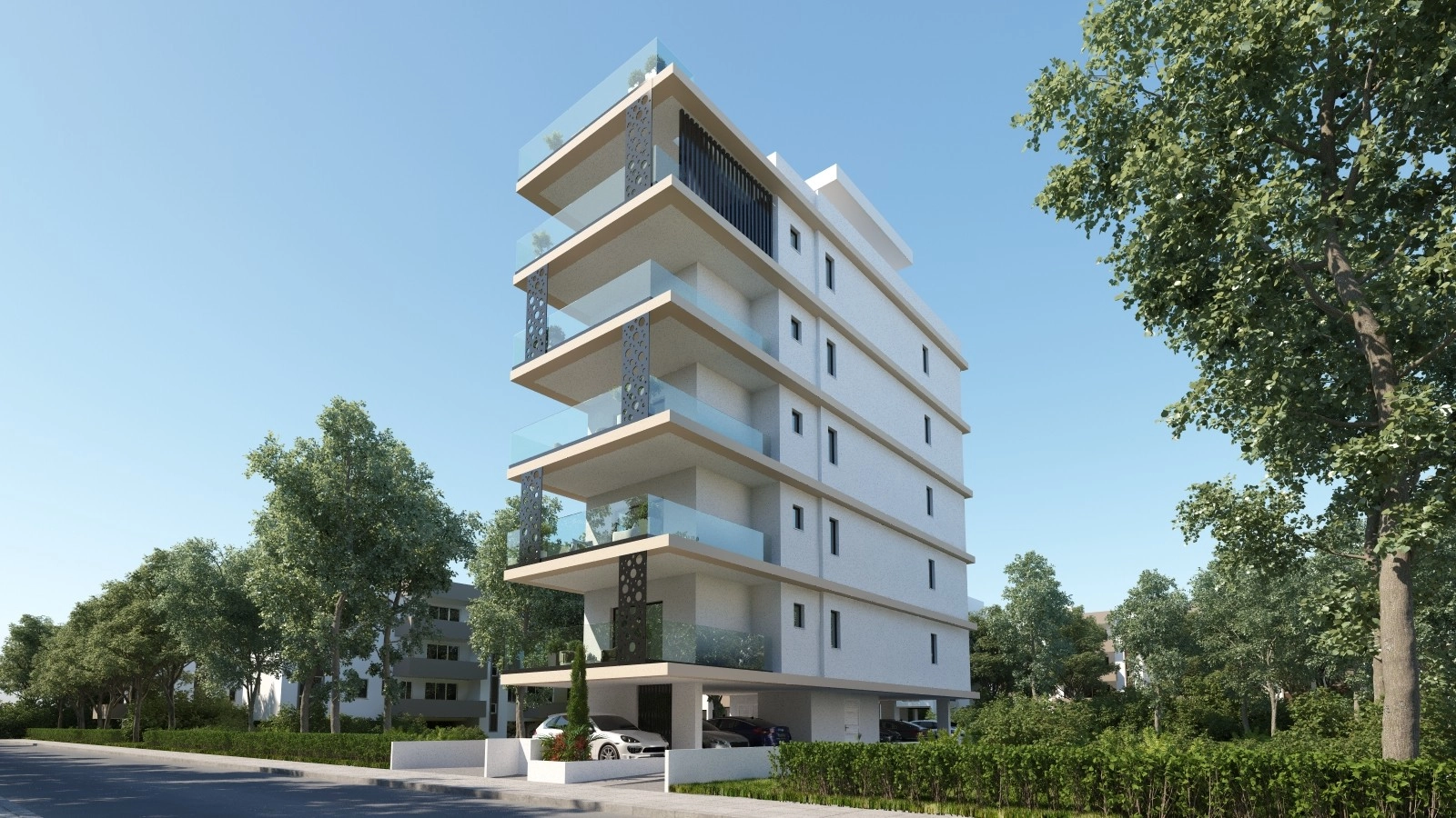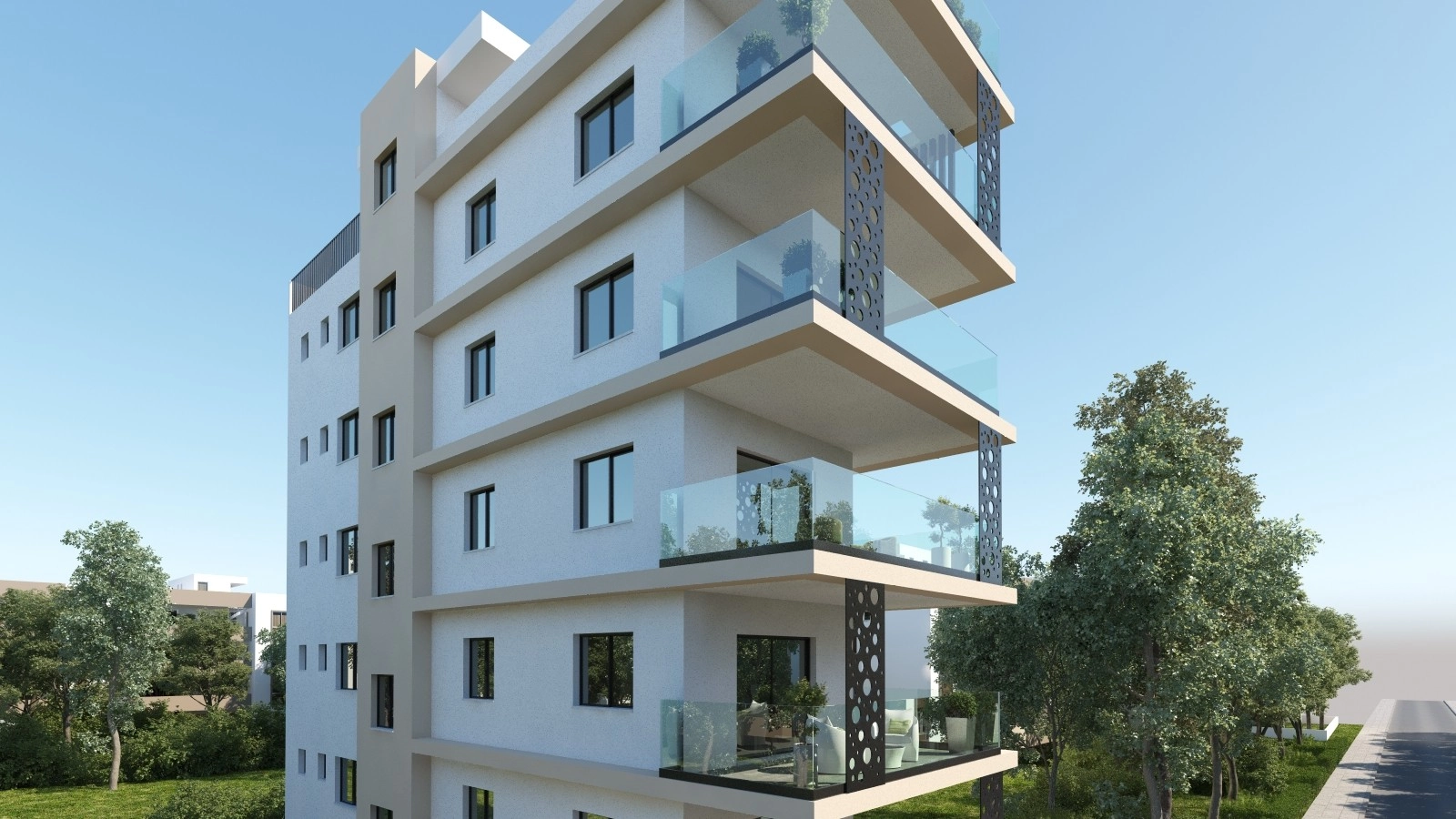 This residential complex consists of five full-floor apartments located in the central area of Larnaca, within walking distance of the American Academy and approximately 1 km from Finikoudes Beach. Each apartment includes two bedrooms with en-suite bathrooms, an open-plan kitchen and living room, and a guest toilet. The internal covered area per apartment is 88 m², with two additional covered verandas totaling 25 m². The top-floor unit features a private rooftop terrace of 60 m², available exclusively to that apartment. Situated in a quiet, family-oriented neighborhood surrounded by large residential properties, the development provides convenient access to local amenities, private schools, supermarkets, and highways to other cities. The building has been designed by a team of architects and engineers, with interior layouts optimized for privacy and efficient use of space. The project will be energy-efficient, using a photovoltaic system with net metering to reduce electricity costs for residents. The main features of the project and the units: Location: City center, near American Academy, Larnaca Five full-floor apartments Each unit: 88 m² covered area + 25 m² covered verandas Two bedrooms with en-suite bathrooms Open-plan kitchen and living room Guest toilet Top-floor unit with 60 m² private roof terrace Walking distance to schools, supermarkets, and 1 km to Finikoudes Beach Easy access to highways (Nicosia, Limassol, Paphos, Ammochostos) Energy efficiency grade “A” with photovoltaic system and net metering