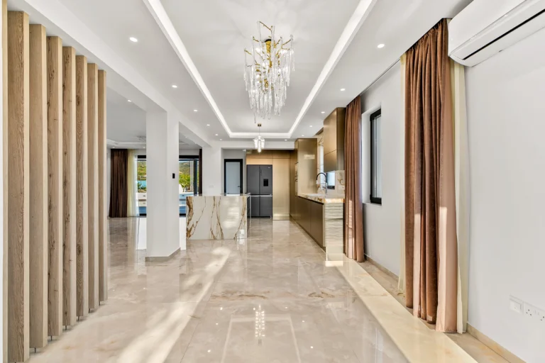 5-bedroom beachfront villa is situated in the sought-after Sea Caves area, offering direct sea access and uninterrupted panoramic views. Positioned on a generous 1,331 m² plot, the residence features 318 m² of covered internal space and 109 m² of outdoor areas, designed to support comfortable year-round living by the coast. The layout spans three levels. The ground floor includes an open-plan living and dining area with direct access to the garden and a 17×4 m private swimming pool. A modern kitchen with a breakfast bar, two en-suite bedrooms with garden access, and a guest WC complete this level. On the upper floor, two more bedrooms with en-suite bathrooms open onto a large private terrace with full sea views. The lower level features a fifth en-suite bedroom, a utility room, walk-in wardrobes, and additional storage. The villa is part of a gated beachfront development with access to on-site facilities, including a wellness center, fitness club, restaurants, outdoor pools, children’s play areas, and direct access to a private sandy beach. Full title deeds available. The main features of the project and the unit: 5 bedrooms / 5.5 bathrooms Covered area: 318 m² Terrace: 109 m² Plot size: 1,331 m² Private swimming pool (17×4 m) Built in 2023 Covered parking for 2 cars Direct beachfront location Sea and coastal views Storage, walk-in wardrobes, and utility room Marble flooring, granite countertops, and fitted wardrobes A/C, fly screens, pressurized water system Fiber internet, security system, and safety locks BBQ area and landscaped garden Access to spa, gym, tennis court, children’s pool & playground On-site restaurant and reception services Located 0.1 km from the sea and 25 km from the airport Full title deeds The project has an EPC certificate with “A” energy efficiency rating.