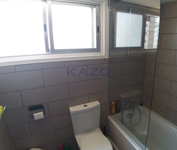 Sixth floor apartment for sale in Makenzy Larnaca. It is renovated & equipped with a/c split units. The flat consists of an open plan kitchen-dining-living area, a main bathroom with shower and wc, two bedrooms and two covered balconies. Internal covered area is 72 sqm and covered balconies around 10 sqm.