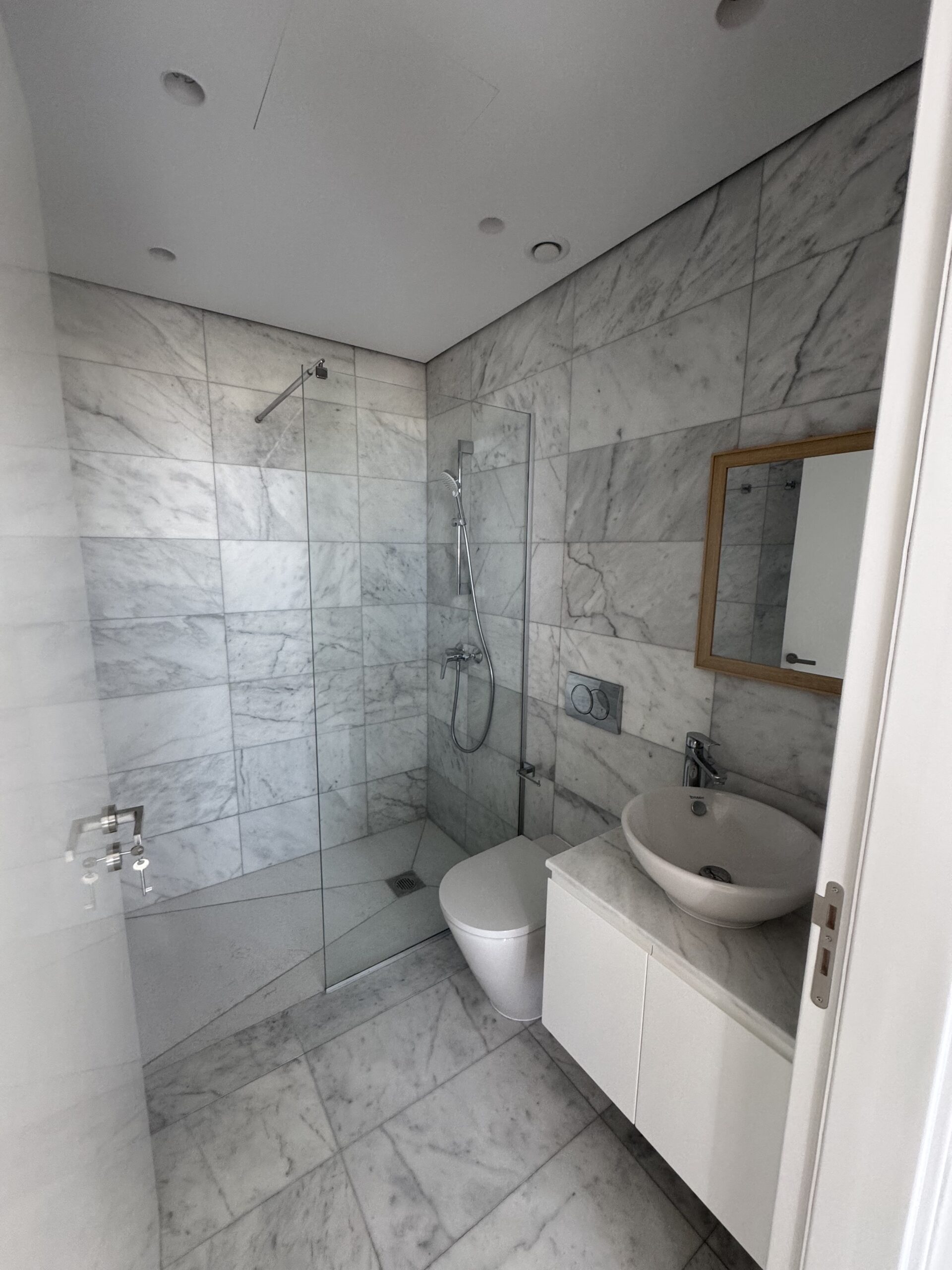 1bedroom apartment1bathroomappliances only5th floorquality finishes 10/10construction product 5 starprivate spacious veranda and gardenpool , gym , sauna , rooftop bbq are communalsprice plus VAT (options for vat available ), direct owner