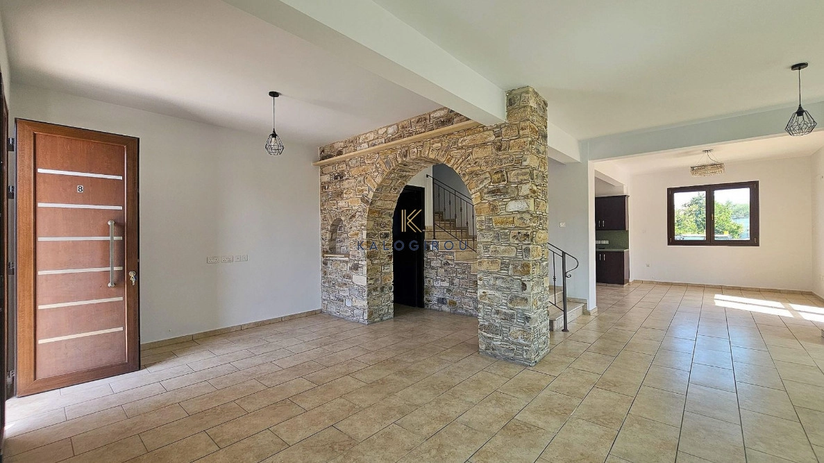 House for sale in Agia Anna Village. The house was built in 2008, has internal covered area of 200 sqm and 10 sq.m covered veranda. It boasts basement, ground floor, first floor and attic. On the ground floor there is a big open plan kitchen- living- dining area, guest wc and large uncovered veranda. Internal staircase leads to upper floors. The first floor comprised of a main bathroom, 3 bedrooms, primary bedroom has walk in closet, en suite shower and covered veranda. The attic is an open space of 30 sq.m.
